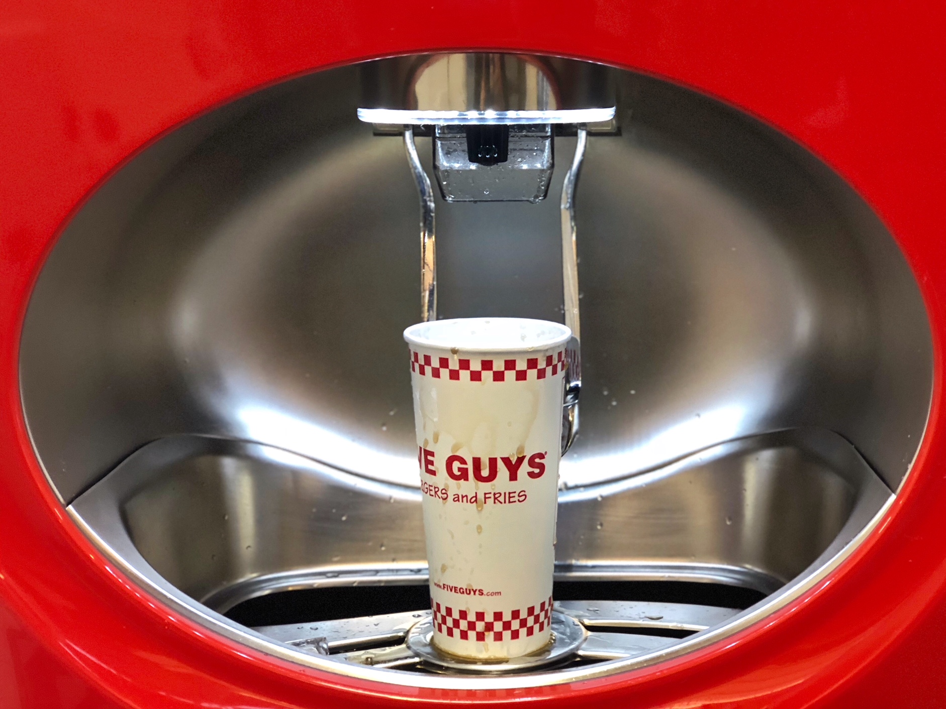 Come succede quasi ovunque negli States, il bicchiere è ricaricabile senza limiti e gli erogatori touch offrono un’enorme varietà di bevande, dall’acqua al tè freddo, dalla Coca Cola al lime a quella alla ciliegia e vaniglia.