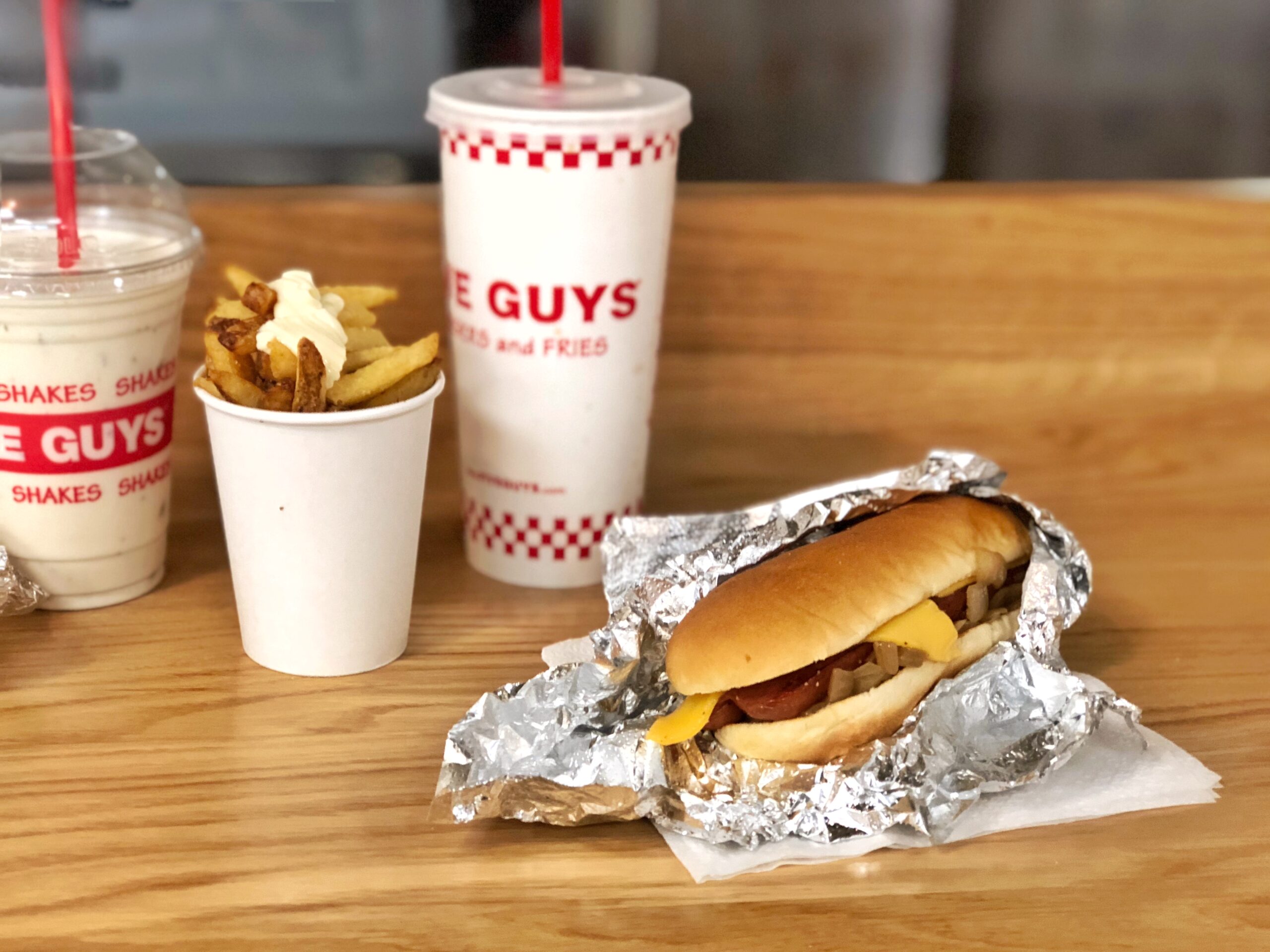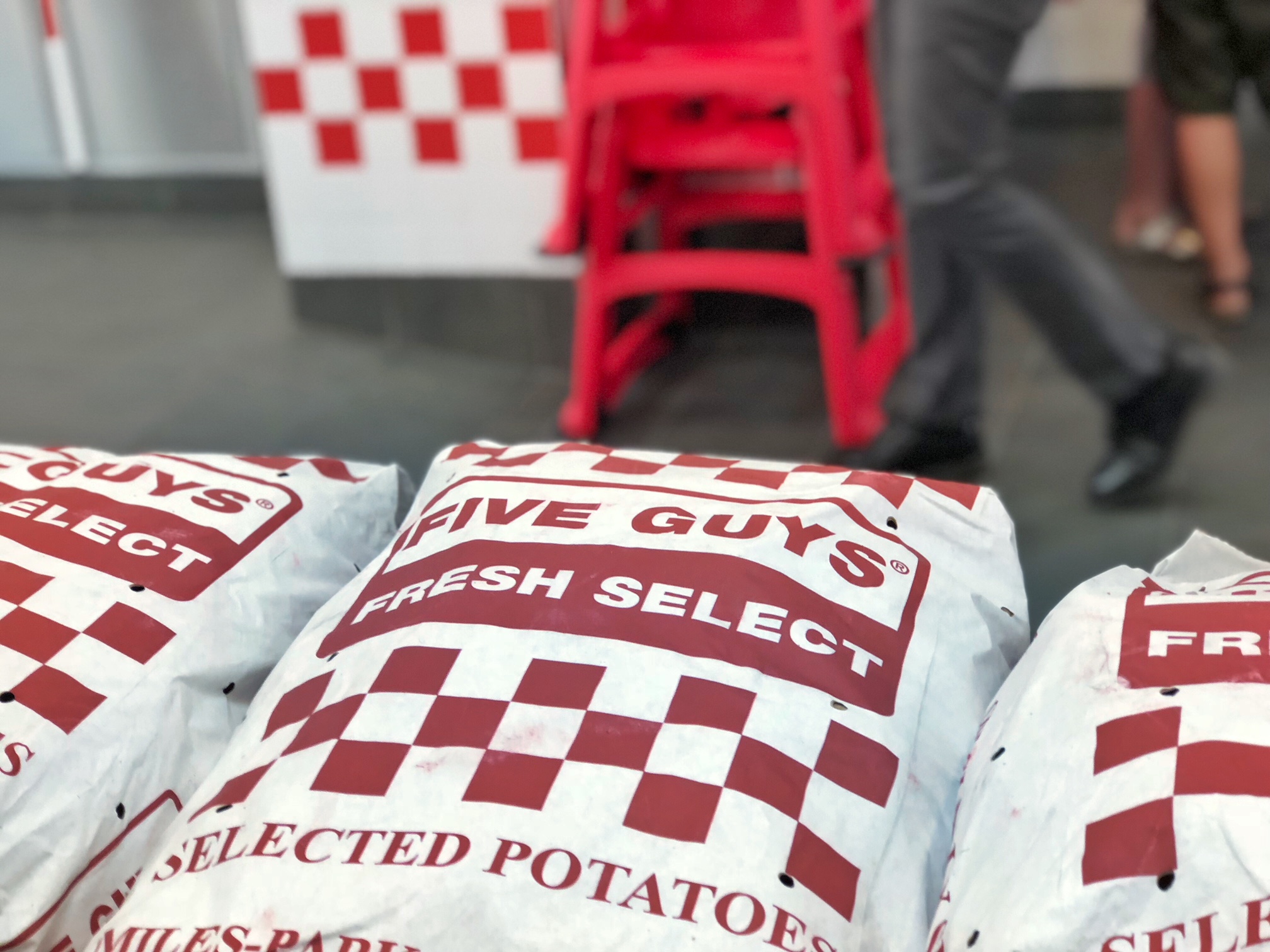 Long story short: Five Guys nasce nel 1986 come piccolo chiosco di hamburger nella Virginia del Nord, aperto dai “cinque ragazzi”, Jerry Murrell e i suoi quattro figli Jim, Matt, Chad e Ben. Al momento attuale la catena conta circa 1500 punti vendita in tutto il mondo ed è ritenuta da Forbes la catena statunitense con la crescita più rapida.