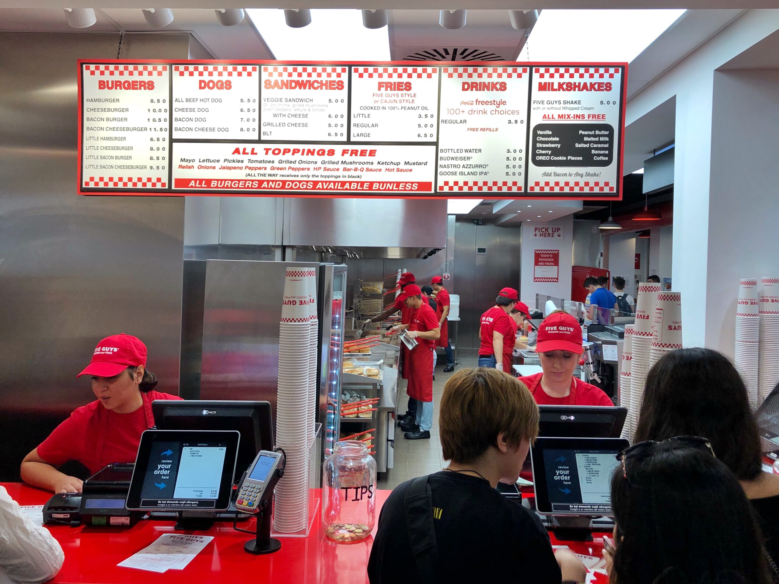 Dopo il boom di qualche anno fa, in Italia il trend delle hamburgerie è ormai in lento declino. I locali dedicati a burger & fries nati negli ultimi dieci anni sono troppi e troppo spesso ipercurati e stucchevoli, con menù infiniti e ansiogeni, una pretesa di artigianalità più o meno autentica e una brandizzazione eccessiva che distrae dalla qualità dei prodotti. Five Guys invece ha sempre e solo puntato su una cosa sola: la semplicità.
