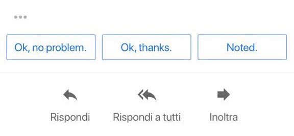 Da qualche mese una nuova funzione di Gmail ha catturato la mia attenzione: si tratta della cosiddetta “Smart Reply”, o risposta rapida. Alla fine di ogni mail, il sistema ti mostra tre possibili risposte tra cui scegliere. A quel punto, non devi fare altro che cliccare sulla risposta prescelta per risparmiarti la fatica di rispondere a ogni persona che ti chiede di fare cose, controllare cose, rivedere cose. In base al contenuto del messaggio, il sistema propone delle risposte pertinenti, che in genere vanno da “Ok, capito!” a “Perfetto, grazie mille,” passando per il classico “Ricevuto, grazie.”