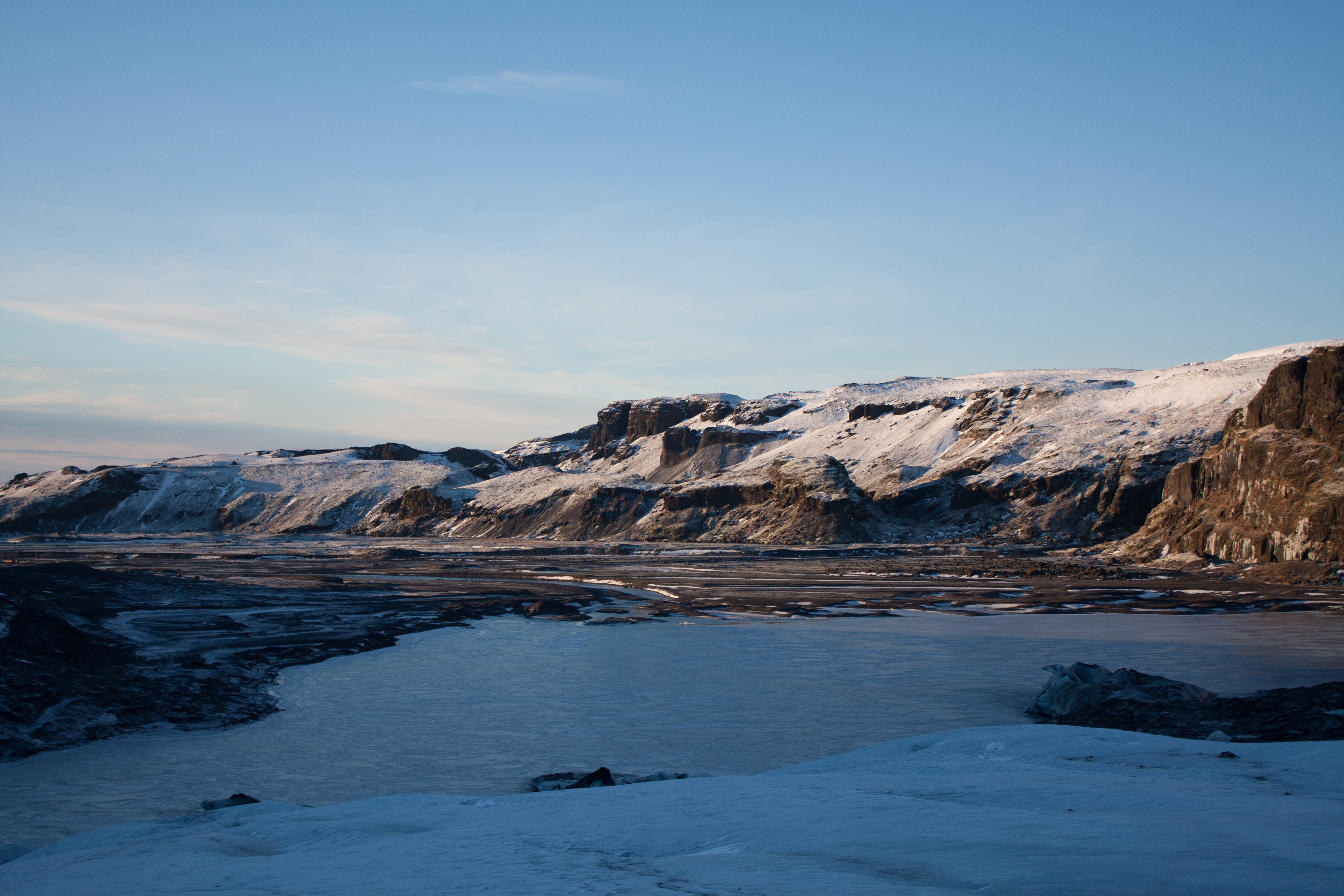 I ghiacciai dell’Islanda si stanno sciogliendo, così, a gennaio, sono partita da Toronto, sapendo che era giunto il momento di andare a vederli. Così sono rimasta ai piedi del ghiacciaio di Mýrdalsjökull con i miei ramponi, le imbracature e la tuta da neve, meravigliata dalla mostruosità di questo enorme cubetto di ghiaccio gigantesco.