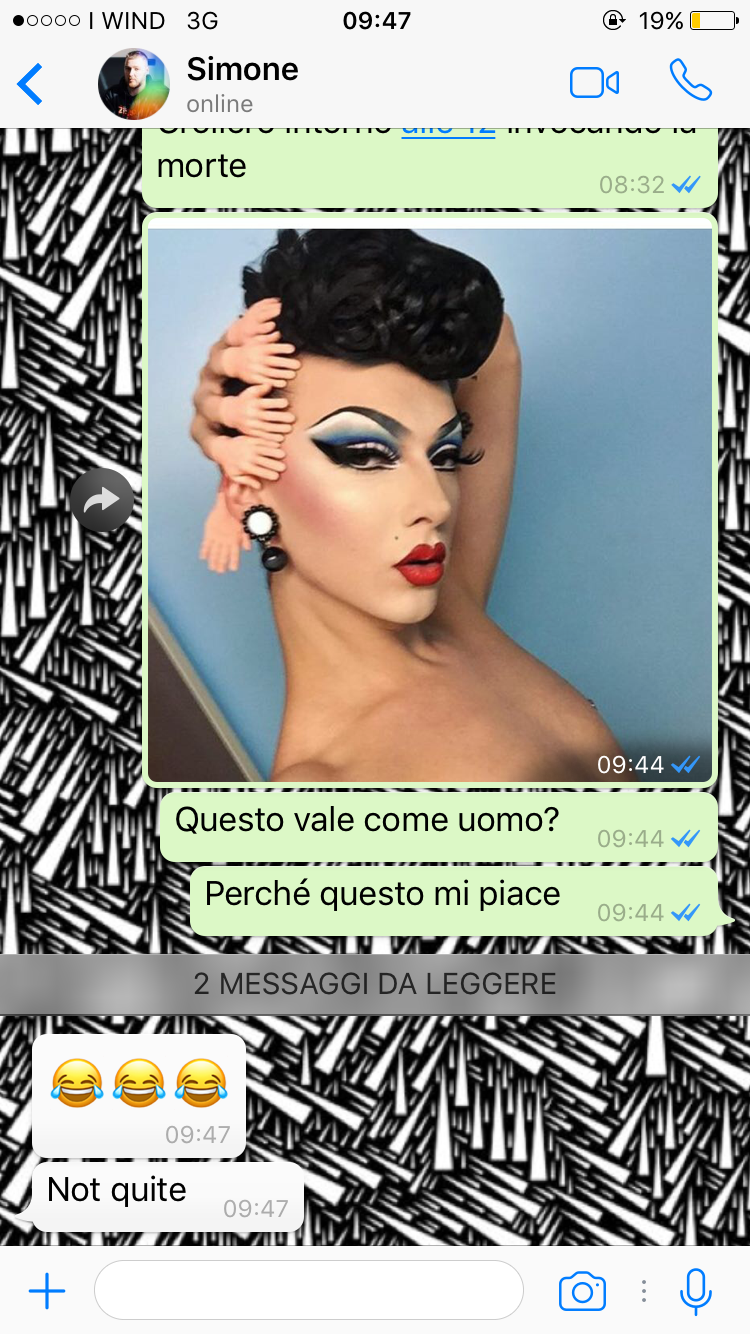 In foto, conversazioni con un’amica non gay molto divertita dalla situazione.
