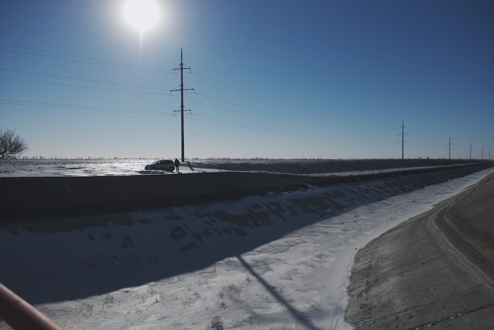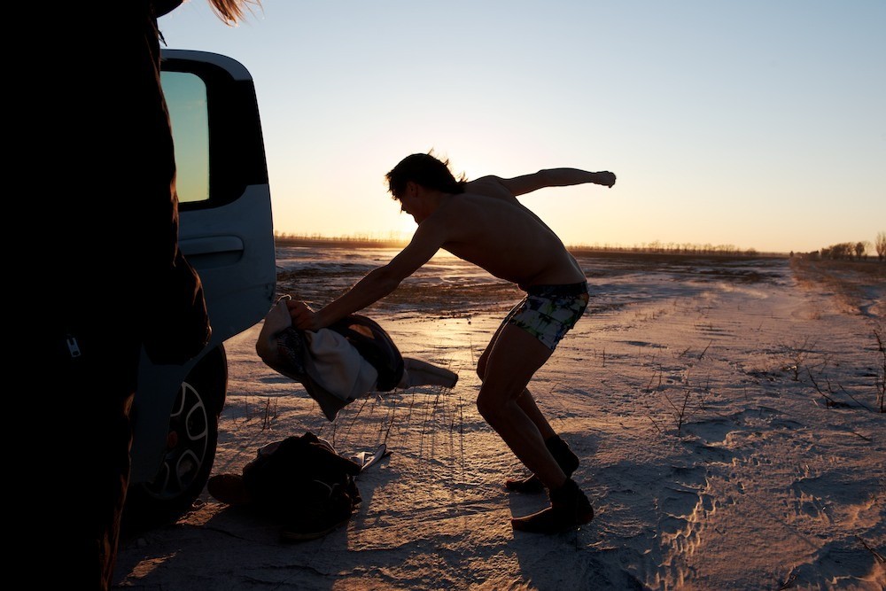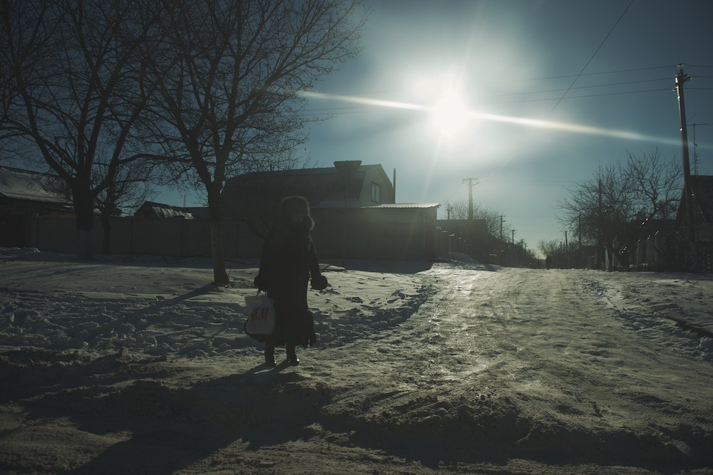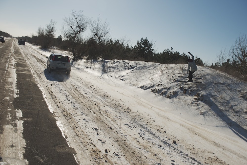 Siamo ancora in Ucraina, lungo il Mar Nero. La forte brezza marina causa la formazione di altissime dune di neve che rendono ancora più difficile il nostro passaggio. Il mare è ghiacciato e quasi non si vede più dove finisce la campagna coperta da brina e dove inizia il mare. Quando raccontiamo che la nostra intenzione è quella di raggiungere Sochi ci rispondono con una risata oppure con uno sguardo incredulo.
