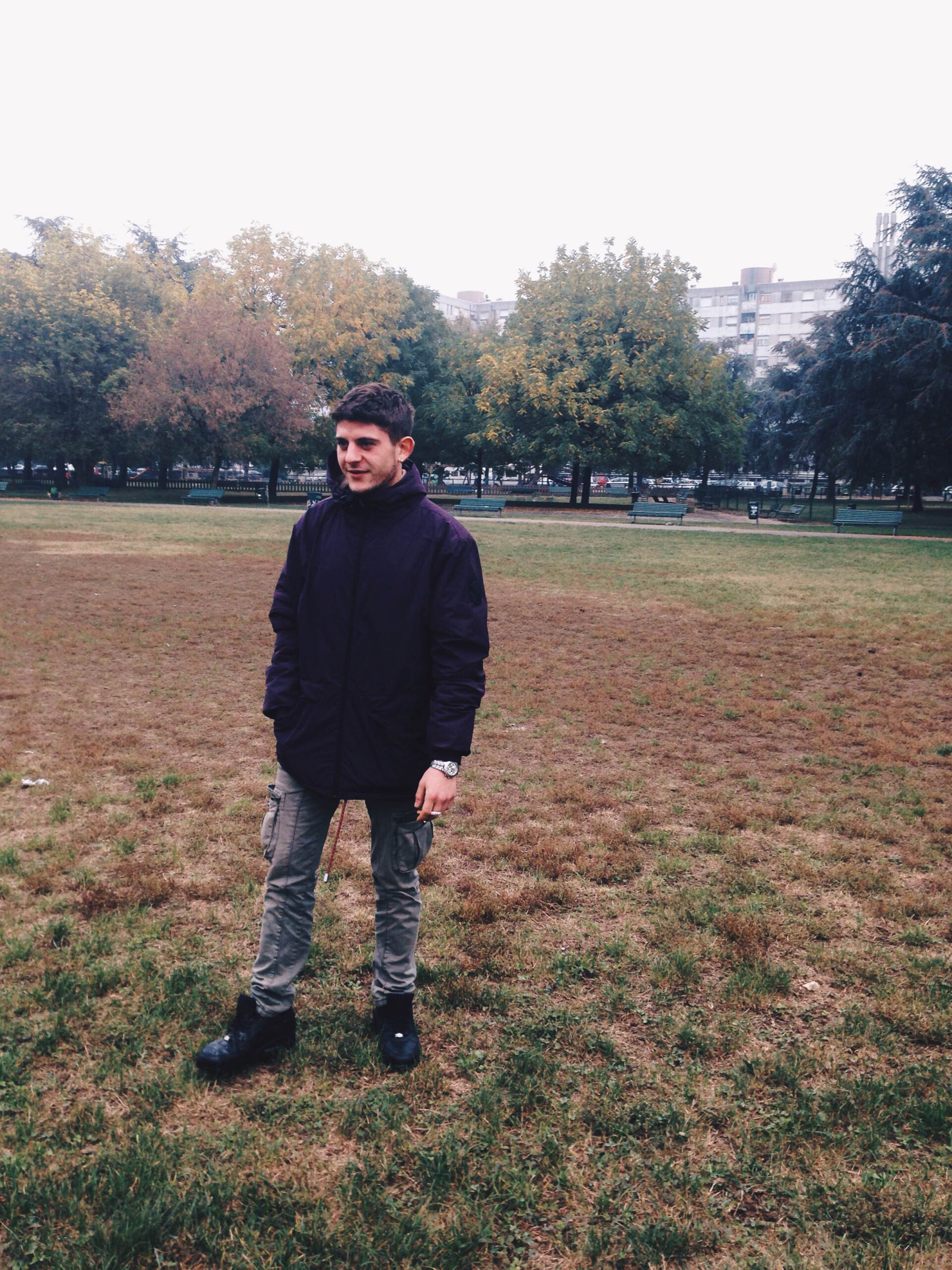 E proprio Falco si unisce a noi. Risaliamo sulla Panda e torniamo al campetto da cui eravamo partiti per scattare qualche ultima foto. Nel frattempo, chiedo a Mirko se ha una minima idea di quello che lo aspetta nei prossimi mesi: “Volevo un attimo fermarmi coi pensieri, ma non con la scrittura. Mi tengo informato, almeno una volta al giorno mi ascolto roba nuova per stare al passo coi tempi. In questo periodo sono sotto di Nekfeu e PSO Thug, per quanto riguarda la Francia, mentre di americano mi sto ascoltando questi due giovanissimi che sono Cozz, che sta sotto l’ala di J. Cole, e Chaz French. Non sono ancora nessuno, ed è come se mi dica tra me e me ‘questi qua sfonderanno tra un anno, io li sto già assorbendo.’”