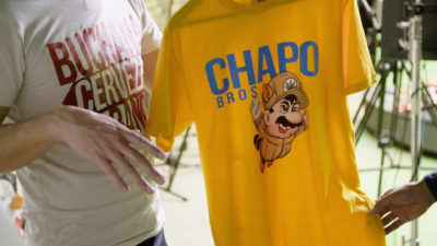 チャポと同じBARABASのシャツ、チャポTシャツ、チャポ・ソング、チャポ・タコス。チャポ・バブルに沸くLAのストリート、弾けんばかりの勢いでエル・チャポを奉り懐を潤すビジネスマンたちに直撃取材。