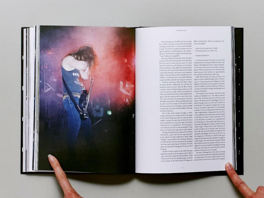 以前のインタヴューで、ムーア(ノイズ愛にあふれる博識家。SONIC YOUTHのギタリスト。しかしMAYHEMのメンバーによる著書を出版するというのは、当初結びつかないように思えた)は、自らのブラックメタル愛と、このプロジェクトがスタートした興味深いストーリーを詳しく教えてくれた。「ヨルンが、部屋のベッドの下にあった未発表写真とか、貴重な資料をまとめて自伝を書いた、と知ってとても興味を持ったんだ。その本はどこにもなかったんだけど、ノルウェー北部のあるCDショップに1冊だけあった。後にも先にもノルウェーで見つけたのは、この1冊だけだった。すごく読みたかったから、エクスタティック・ピースのパートナーと一緒に、出版を決めたんだ。ノルウェーの出版社に電話したら、担当の女性はこういった。『私たちも嬉しいですし、ミュージシャンであるあなたが出版してくれるんですから、彼もすごく喜ぶはずです』。そんなこんなで英語版の出版権を手に入れた。内容も素晴らしかったよ。控えめな言い回しで書かれているんだけど、地に足がついていて、自殺や殺人、教会への放火など、バンドにまつわる様々な事件の脱神話化を試みている。スキャンダラスな要素を抜いて提示しているんだ。MAYHEMは2年くらい、客がほとんどいない会場でプレイしていた。でも数々の事件を起こしてから、『このヤバいバンドはどこのどいつだ?』って注目されるようになった。そして、ブラックメタルを代表するバンドになったんだ」