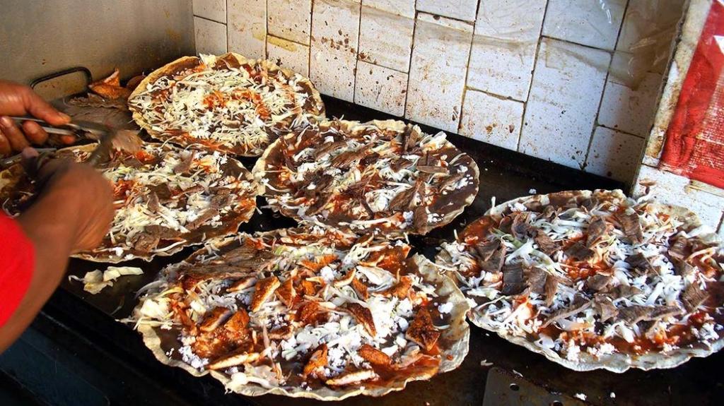 「叔母のアレリ・ソト・ロペス(Areli Soto López)が、昔、ここで働いていたんだ。現在、私が知っていることは全て叔母が教えてくれたんだ」とソトは鉄板にトルティーヤをのせながら語る。そして、彼がトルティーヤの隣にタサホと呼ばれるステーキをひと切れヒョイとのせると、熱せられた肉の脂のジュージューいう音で、隅に置かれた小さなラジオから流れる音楽がかき消された。調理人は小さなブラシを使い、トルティーヤにアシエントを塗り、潰した豆をたっぷりとのせる。「豆の層が薄いのは嫌だから、できるだけたくさんのせるんだ」
