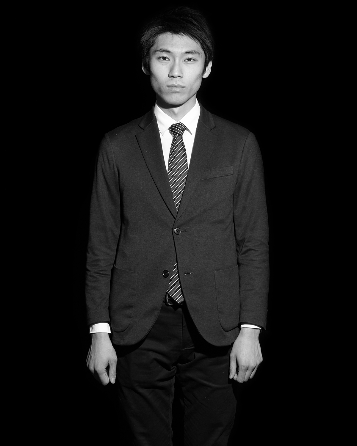 スーツ姿、お似合いですね。スラッとしてらっしゃるし。