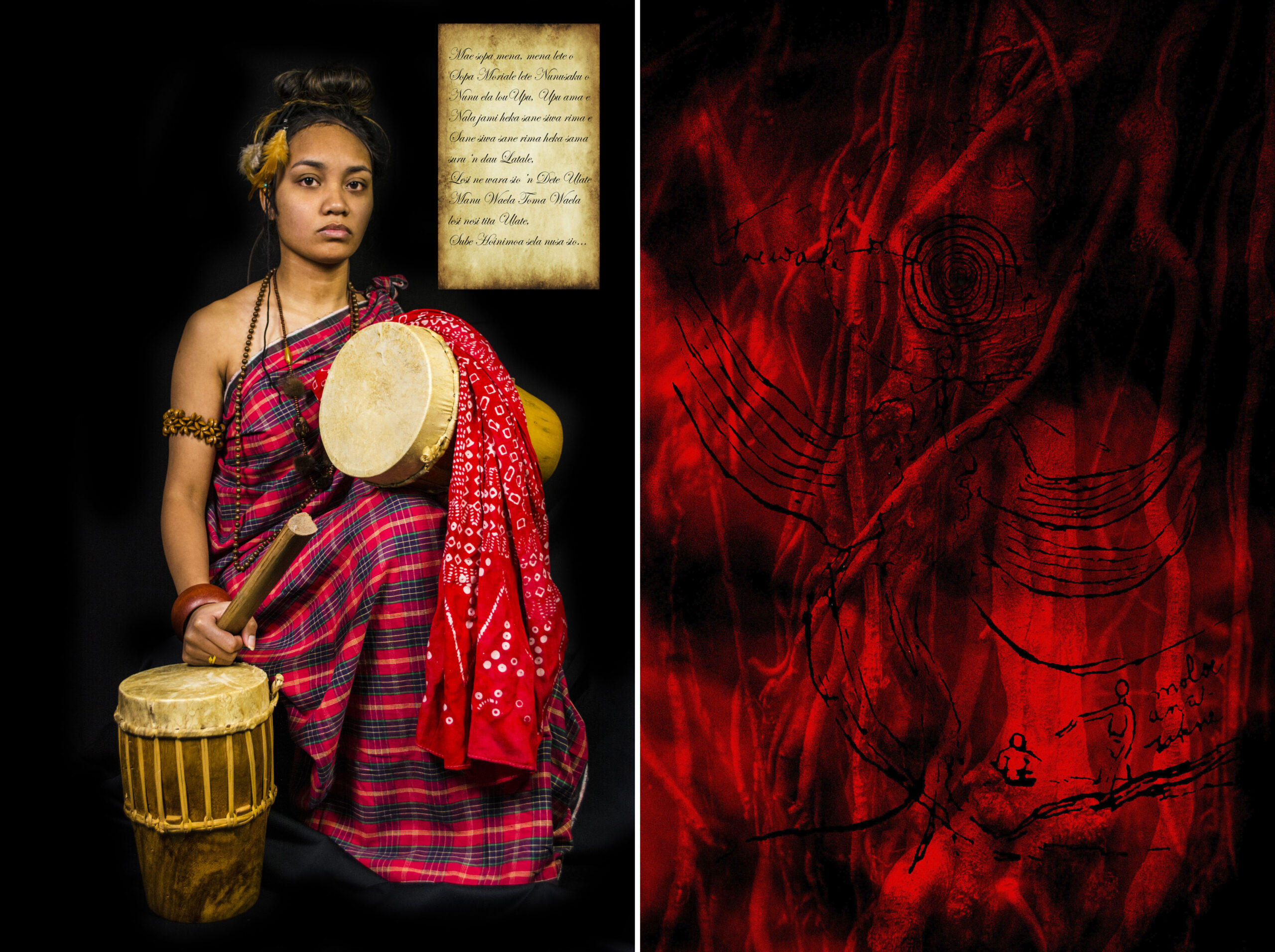 Dat klinkt misschien niet al te vrolijkstemmend, maar ze benadert het positief: door Molukse tradities en verhalen te vertellen, wil ze inzicht bieden in een wereld die voor buitenstaanders gesloten blijft. Op haar foto’s zien we verhalen over de voorvaders van het Molukse volk, die haar als klein kind al verteld werden. Ze speelt er ook zelf een rol in, bijvoorbeeld als Alfoerse jonge vrouw met een Tifa; een slaginstrument dat wordt geslagen op belangrijke Molukse ceremonies.