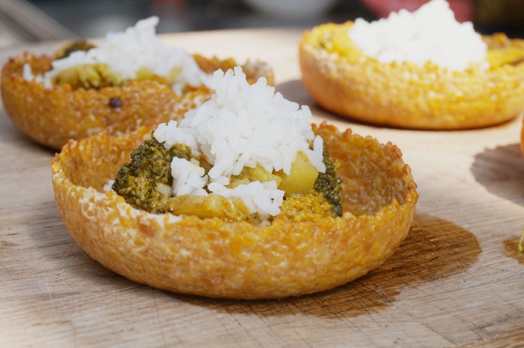 Ondanks dat het proces gemakkelijk verloopt, is het nog wel arbeidsintensief (per bakje zijn de dames gemiddeld vijf minuten bezig) en daardoor ook relatief duur. “Voor het restaurant kunnen we zelf genoeg bakjes maken, maar voor die megagrote festivals zijn we nog niet klaar,” vertelt Corinne.