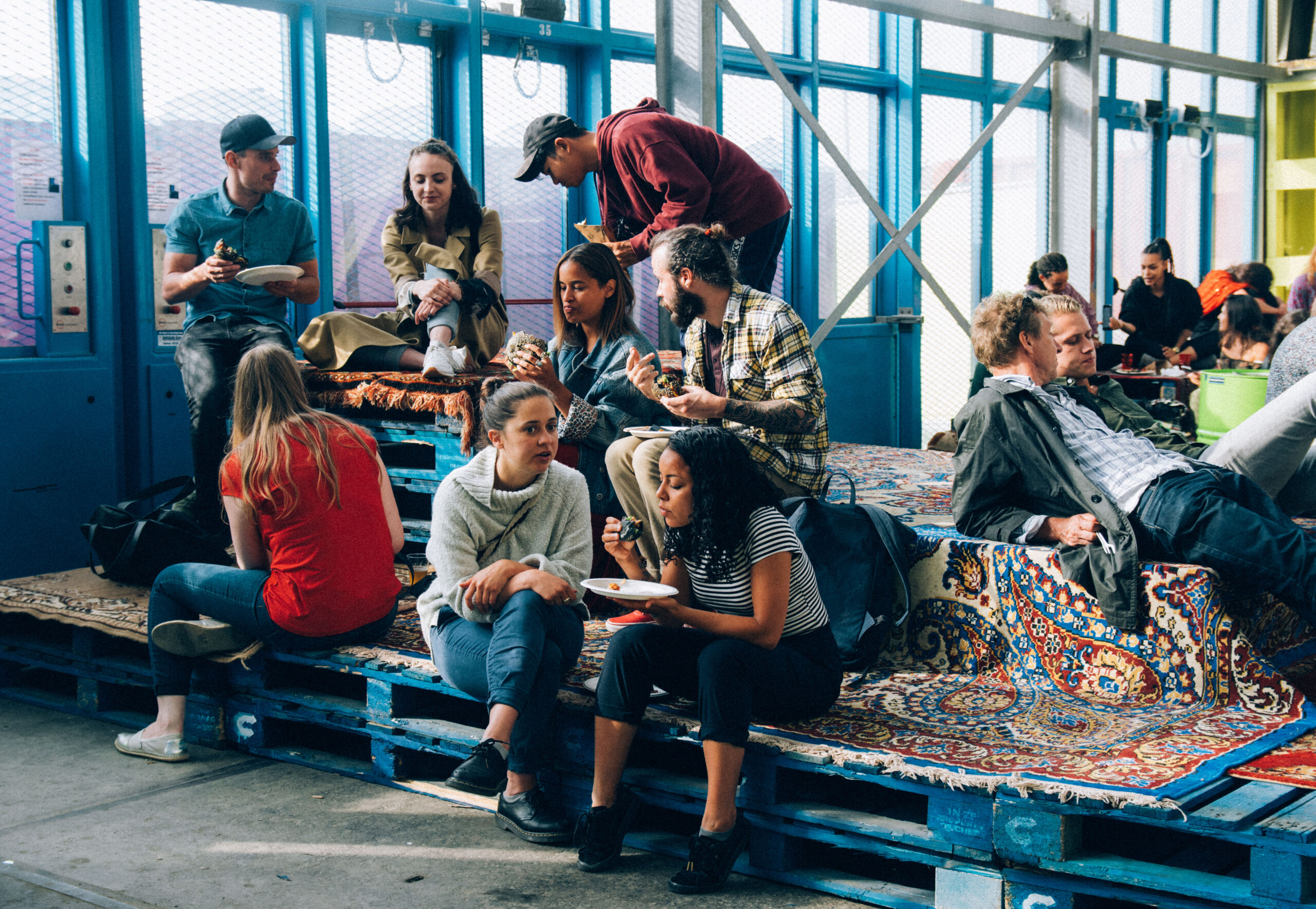 Enfin, koppie erbij: er staan nog vier kraampjes op de planning. Ik ben nu vooral benieuwd naar het veganistische driegangenmenu van Yerba. In het midden van de ruimte staat een klein afgeschermd terrasje met tien tafeltjes. Het enige probleem is dat er niemand zit. Mijn vriend is niet enthousiast en probeert me het idee uit het hoofd te praten: “Wil je dat echt doen? We zijn dan net een stel muppets in een hok.”