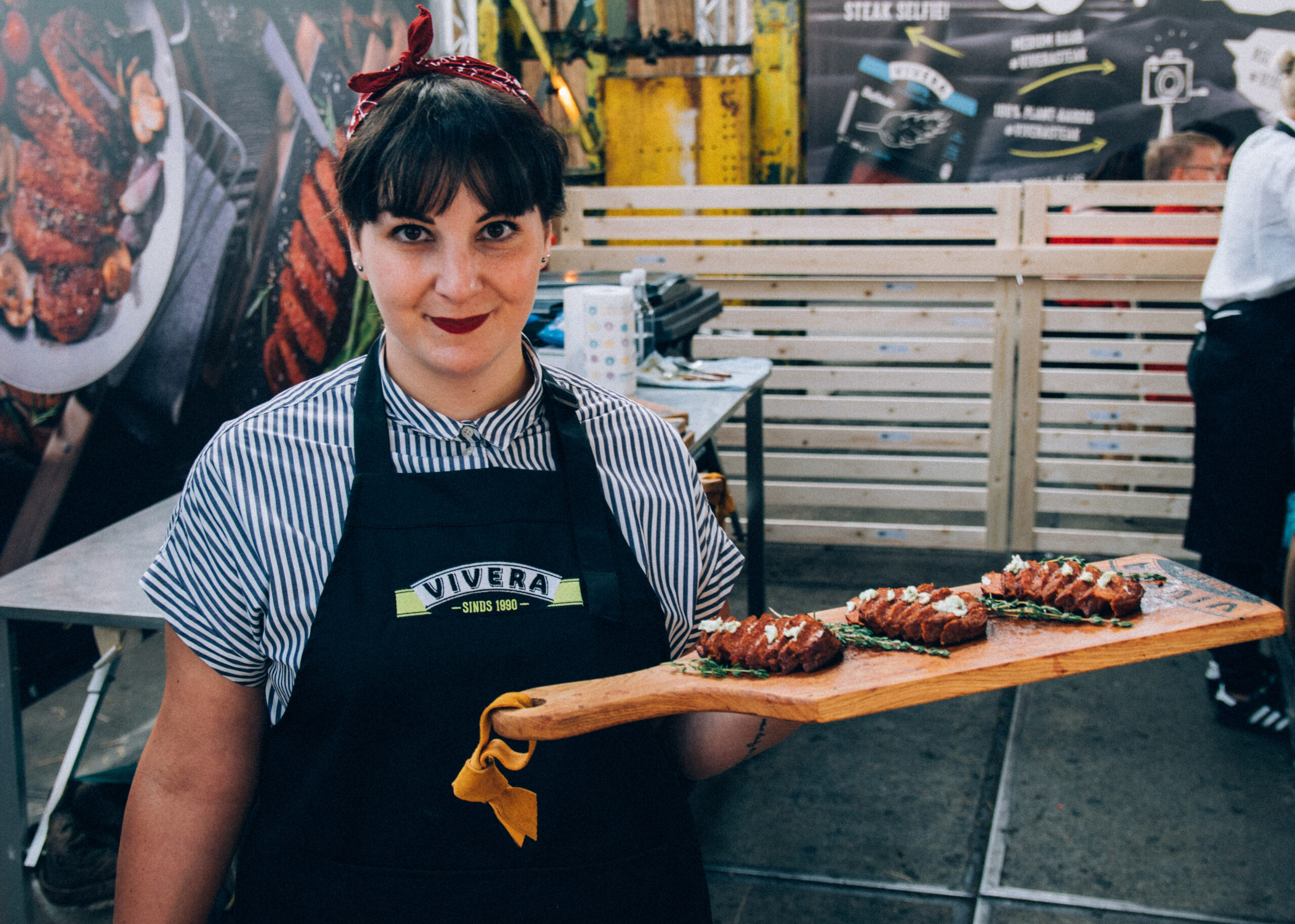 Ik ben benieuwd in hoeverre mijn herinneringen aan biefstuk overeenkomen met deze plantaardige variant – en wat er verder allemaal voor veganistische fun te beleven is op het festival.