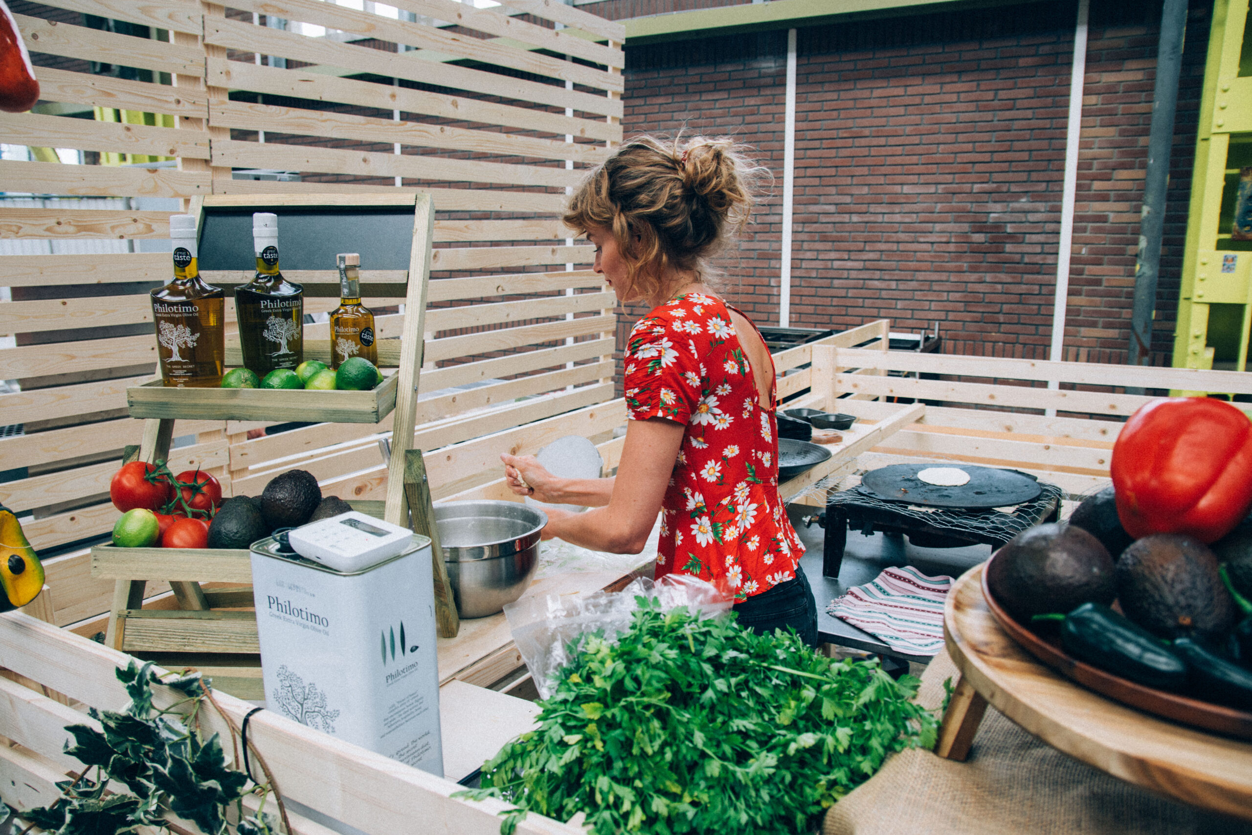 Ik besluit om tactisch te plannen welke kraampjes ik allemaal nog moet proberen. Die planning sla ik vrijwel meteen in de wind, want ik begin weer met poffertjes. Mijn vriend is het met me eens: de basilicum-muntpoffertjes zijn geweldig. Vervolgens eet ik tortilla’s met portobello bij een kraampje waar ‘Oma Nana’, een jonge, blonde vrouw, in de weer is. De tortilla’s smaken geweldig en ruiken volgens haar naar de heerlijke geuren van Zuid-Amerika. Ik knik enthousiast, maar heb geen idee. Ik ben er nog nooit geweest.