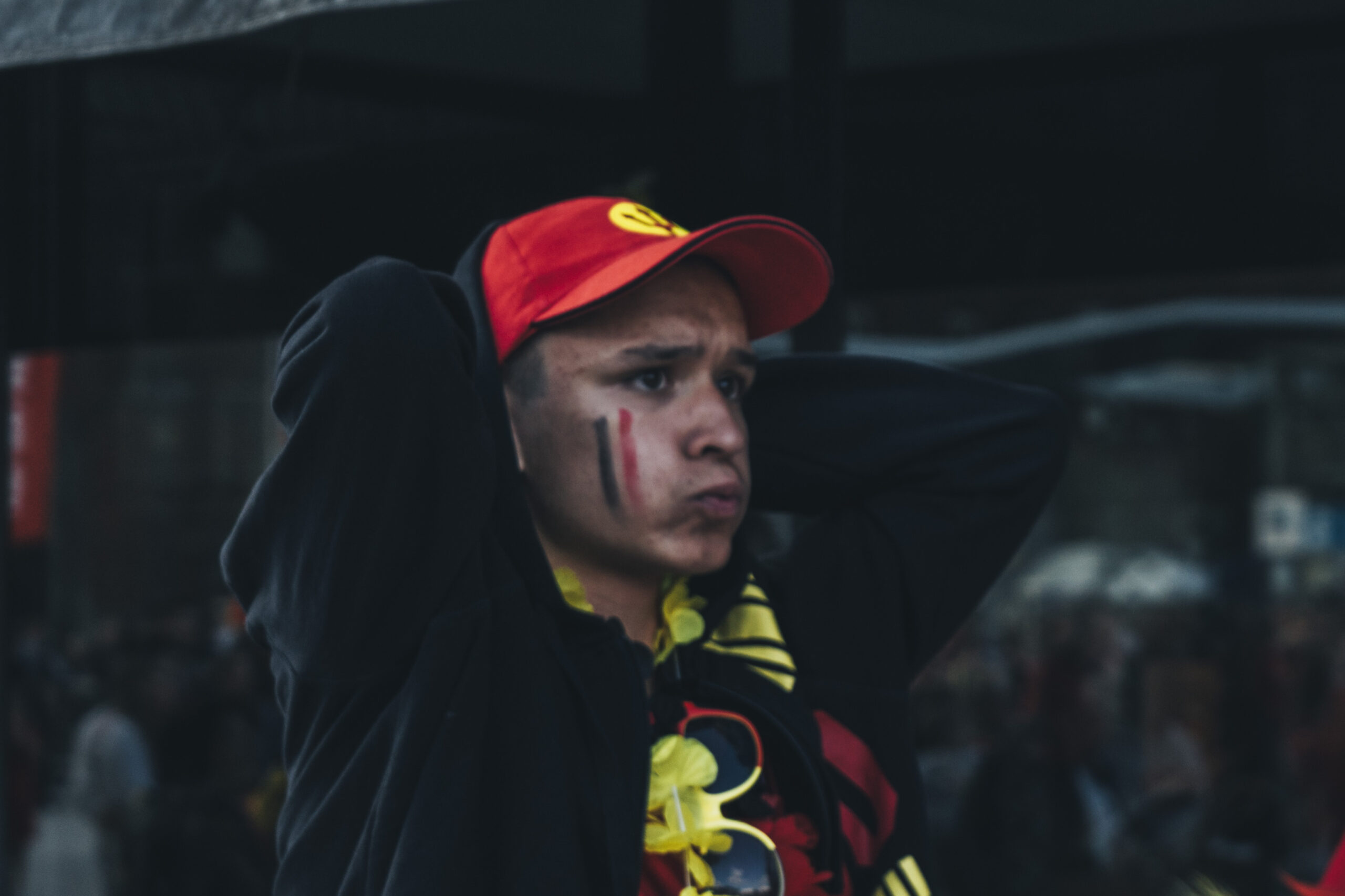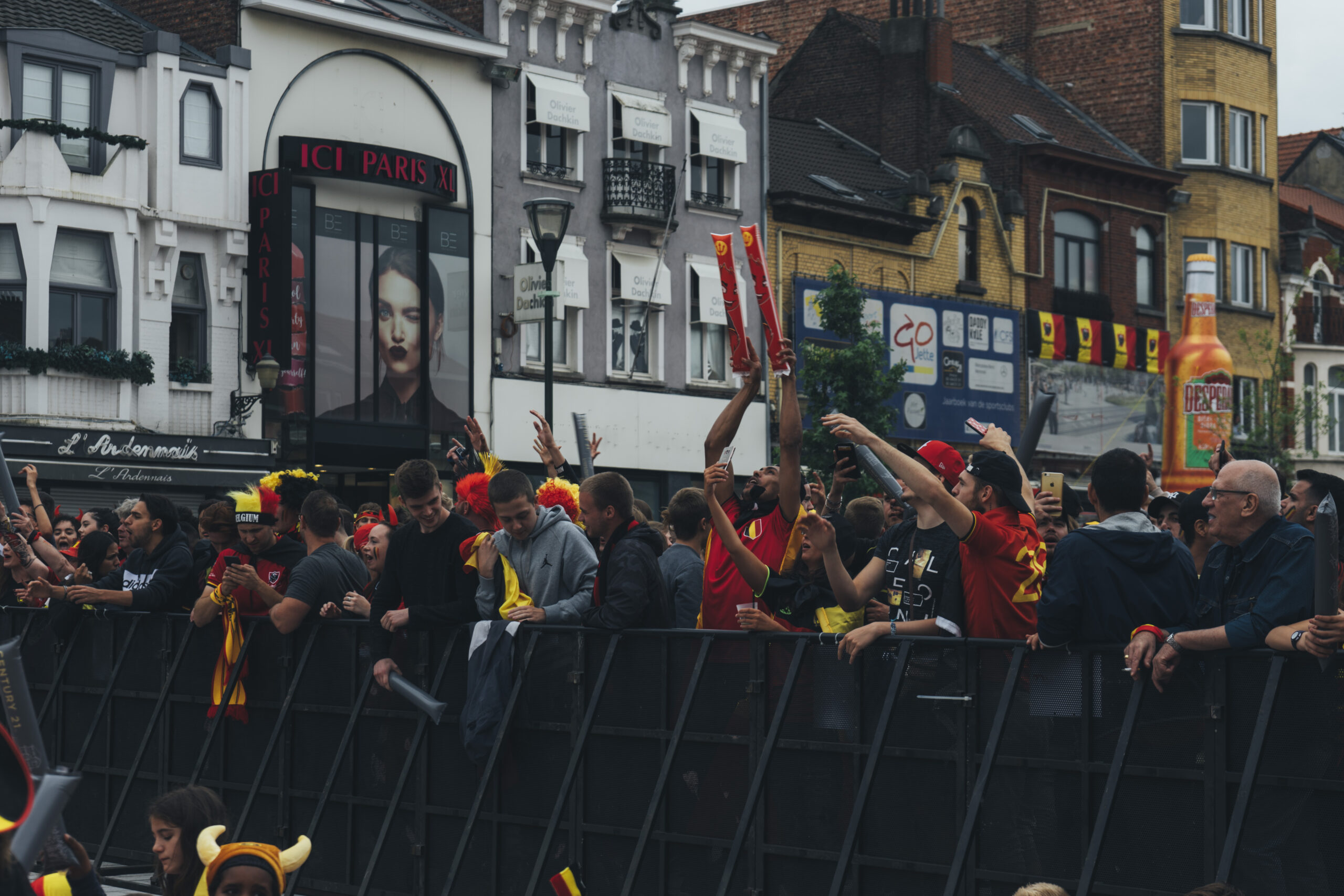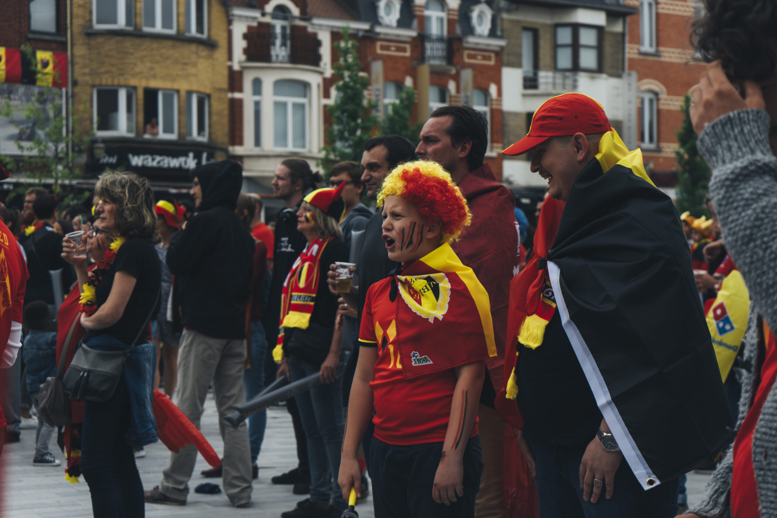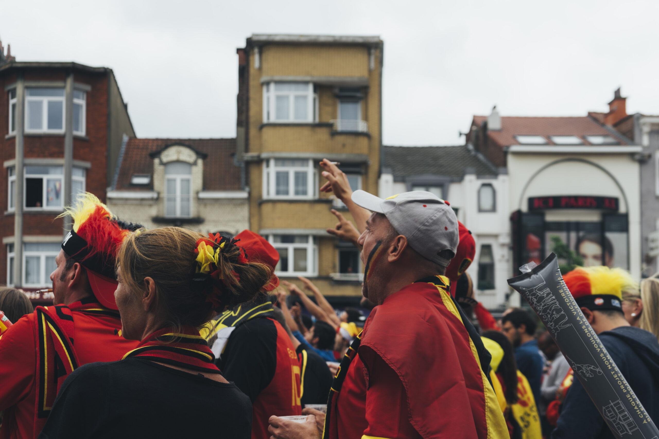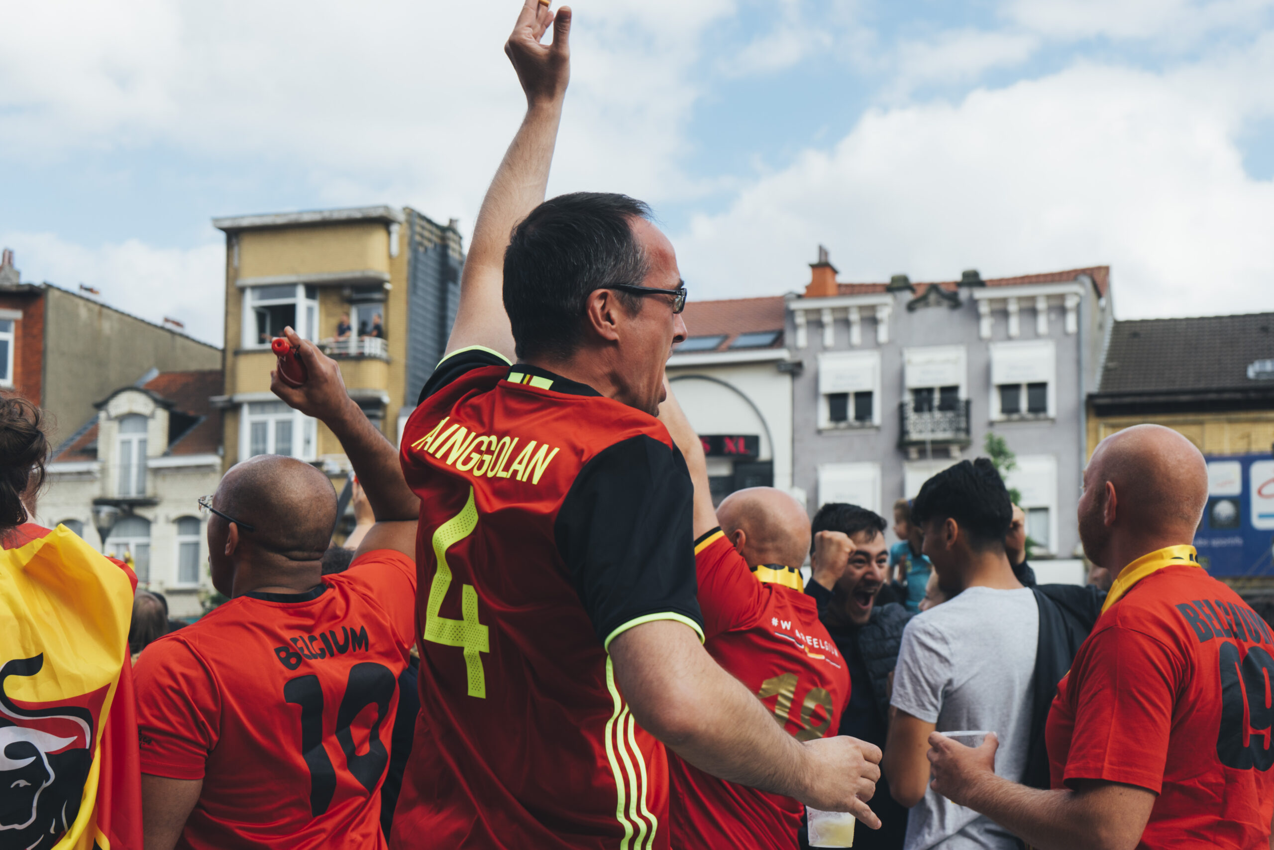 Ook op het Koningin Astridplein in Jette verzamelden Belgische supporters zich voor de match. Het werd zo’n middag waarop het niet uitmaakte of je jong of oud, dik of dun of Vlaams of Franstalig bent. Het enige wat je moest doen om erbij te horen was beweren dat Kompany niet fit geraakt, Nainggolan erbij had moeten zijn of Witsel te vaak breed speelt. Je was een goede Belg als je na een kwartiertje klaagde dat het ook dit jaar weer niets zou worden, dat de gouden generatie verloren ging of dat winnen niet in ‘ons’ DNA zitten.