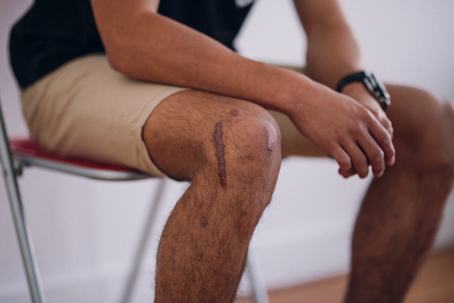 Ik denk dat ik er zelf in het begin meer van had moeten zeggen. En het heeft ook langer geduurd doordat ik snel last heb van littekenweefsel. Dan gaat het litteken opzwellen, ook in de knie. Dan komt er vocht bij en kun je de knie niet strekken.