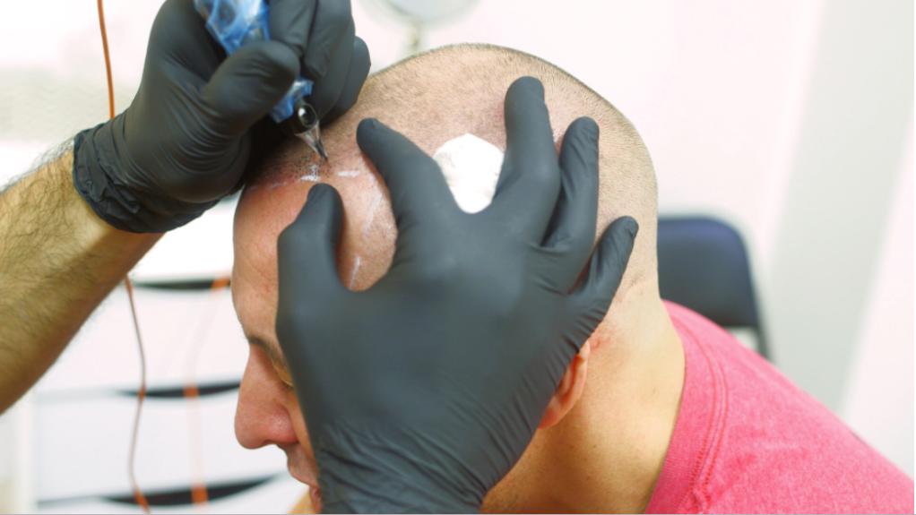 Een paar maanden geleden ontdekte ik een mogelijke oplossing voor mijn probleem. Het heet scalp micropigmentation, oftewel een haartatoeage. Het houdt in dat je schedel met kleine stipjes wordt getatoeëerd, zodat het net stoppels lijken. Blijkbaar is het dé uitkomst voor mensen die de littekens van een haartransplantatie proberen te camoufleren, omdat ze hun volle haardos koste wat kost wilden behouden. Mensen zoals ik.