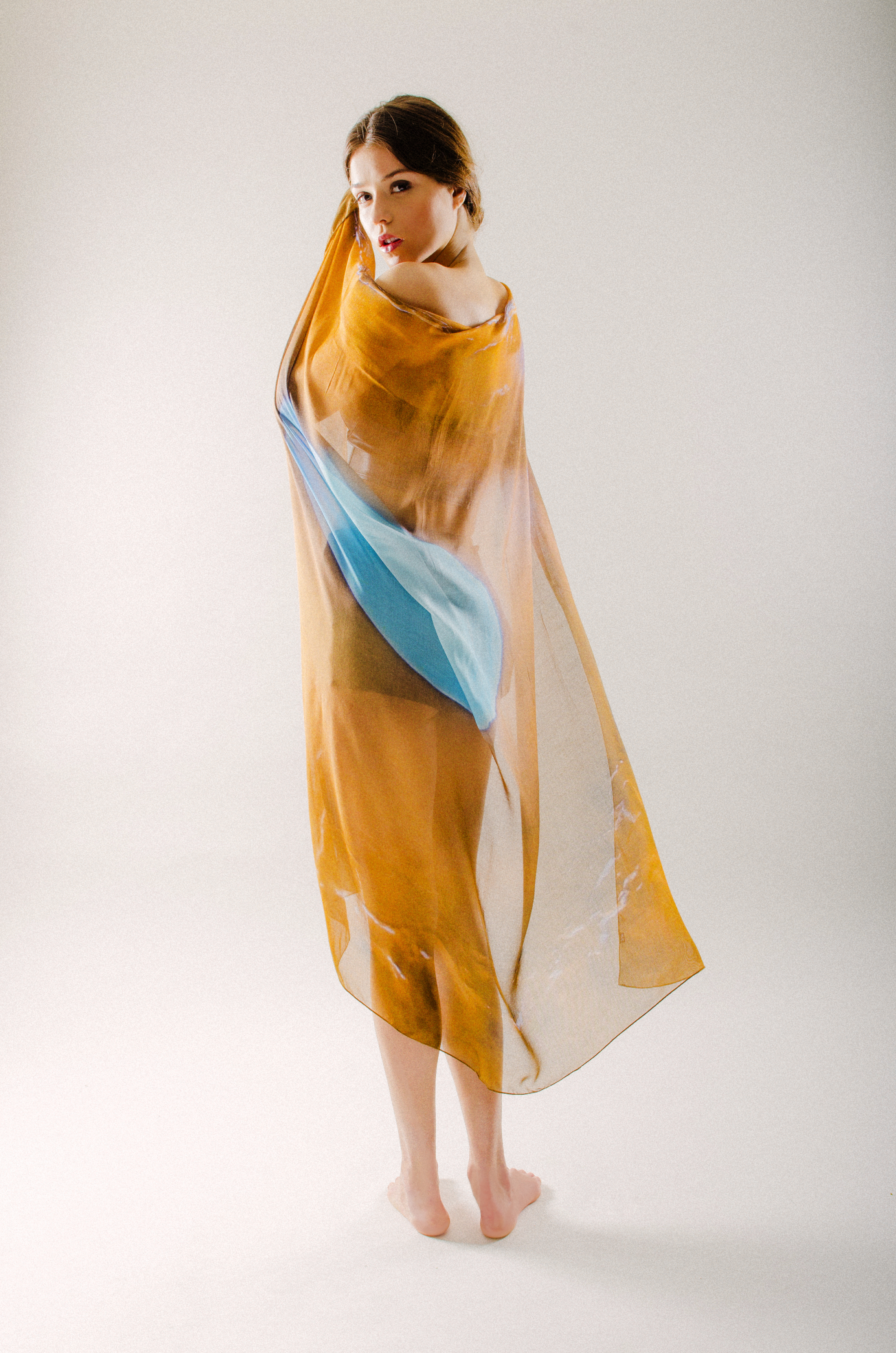 + We zagen sjaals die gekleurd zijn met bacteriën, en andere met prints van het Mars-landschap en satellietfoto’s.