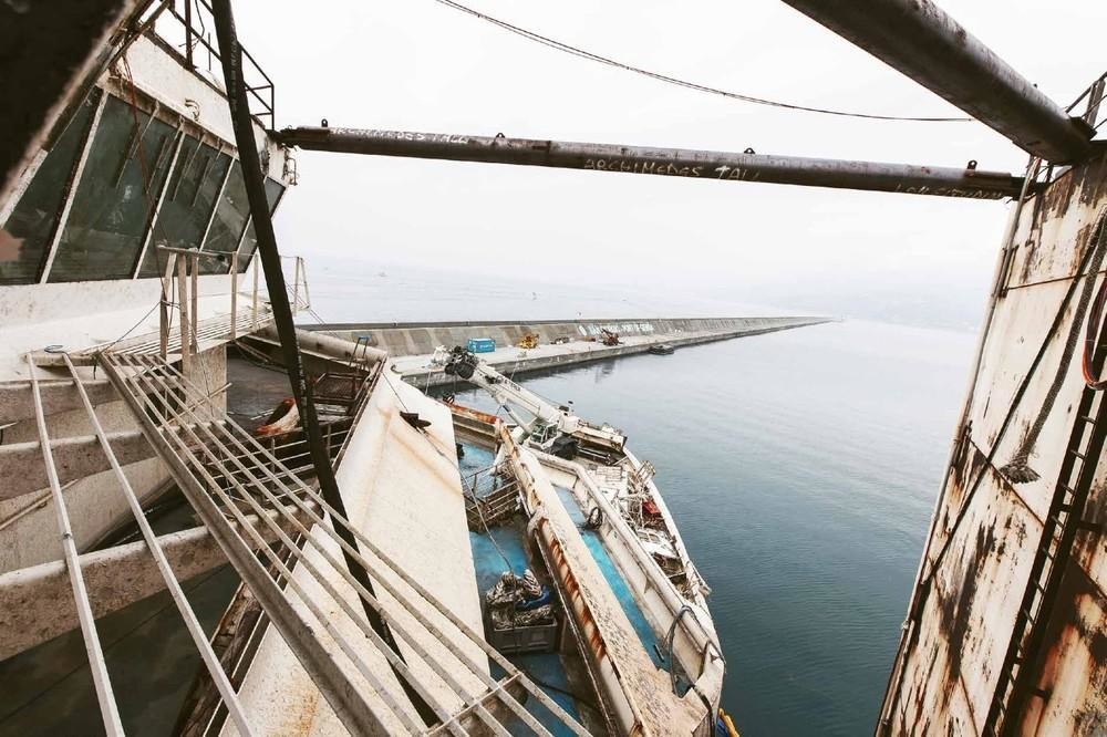 Het duurde na de ramp nog twee jaar voordat het wrak werd verplaatst naar de haven van Genua, waar het nu zal worden gestript en verkocht als schroot. Fotograaf Jonathan Danko Kielkowski ging stiekem aan boord om foto’s te maken. We spraken hem over hoe hij op het idee kwam om het vernielde schip te fotograferen en hoe het voelt om op een spookschip te zijn.