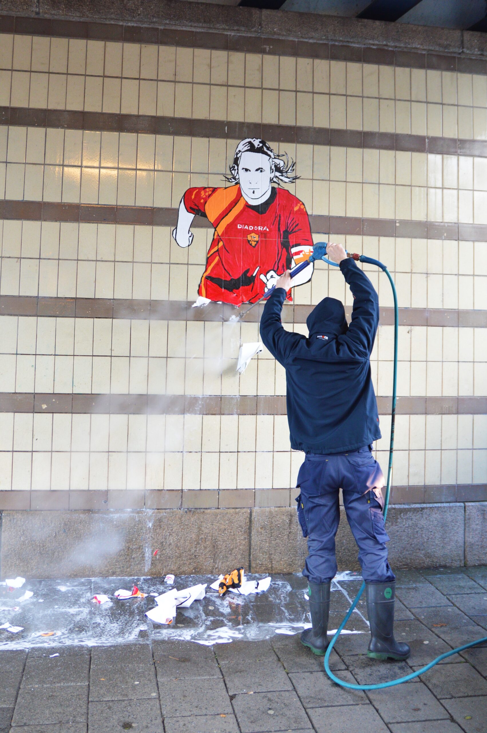 Eigenlijk is elke gemeentelijke procedure een bureaucratische nachtmerrie. En precies daarom is het verwonderlijk dat de gemeente afgelopen vrijdag een straatkunstwerk van de Italiaanse voetballer Francesco Totti verwijderde, zo’n vijf minuten nadat kunstcollectief Kamp Seedorf het had gemaakt. Hoe kan dat in hemelsnaam? Op een vrijdagmiddag?! Wij probeerden het uit te zoeken. Wat volgde was de bureaucratische hel die we van de gemeente gewend zijn. Gelukkig maar.