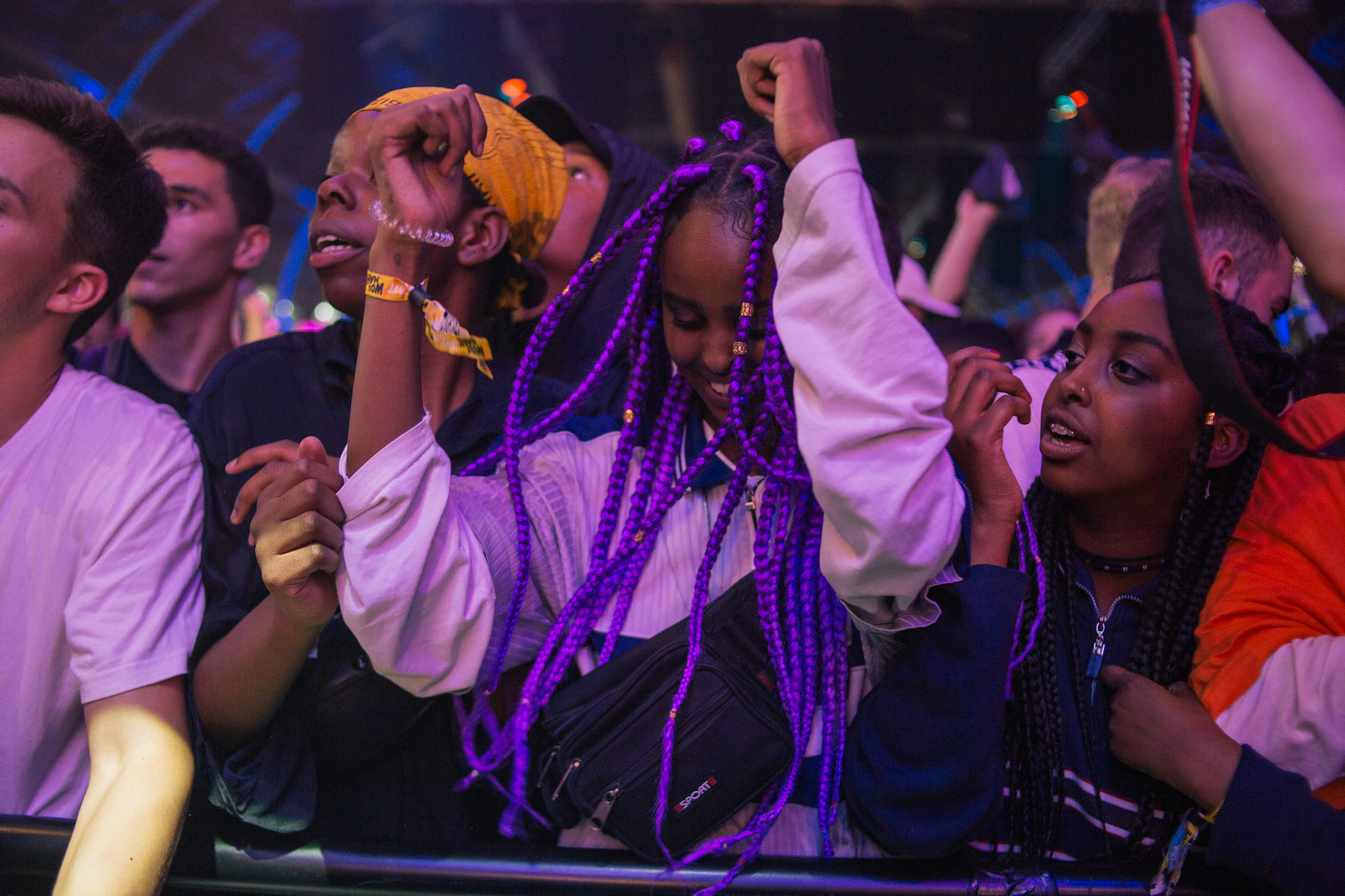 Een uur voordat de show van Travis Scott begint, probeert zo’n beetje heel Woo Hah een plekje vooraan de mainstage te bemachtigen. “We gaan hier dood, maar wel met z’n allen,” hoor ik iemand half euforisch, half angstig tegen zijn vrienden zeggen. “Die man is nog niet eens in Tilburg, doe rustig!” roept een guy terwijl zijn witte schoenen geruïneerd worden. Er moet inderdaad een wonder gebeurd zijn, moest er niemand gewond zijn geraakt tijdens het ongelooflijk harde optreden van La Flame. Het claustrofobisch krappe veld ontploft bijna wanneer Travis opkomt, en alle ongeruste gezichten veranderen in een klap in hondsdolle gelukzaligheid. Het is de perfecte afsluiter voor een festival waar iedereen de dagen vooral springend en badend in het zweet doorbrengt.