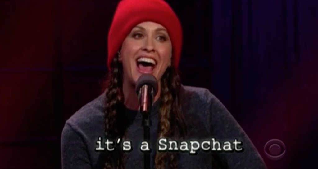 Mając to na uwadze, Morissette podczas występu w The Late Late Show zdecydowała się nieco uwspółcześnić “Ironic”, dodając do niej Tindera, Snapchata, Netflixa, iPhone’y i Facebooka na naszej nowej liście #pierwszorzędnychproblemów. Tu nie ma zmiłuj. Pomagał James Corden.