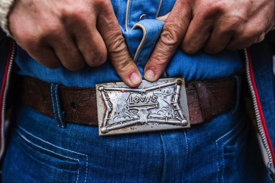 Mężczyzna ubrany od stóp do głów w dżins trzyma klamrę paska jak prawdziwy kowboj i patrzy na mnie bez wyrazu. Daję mu wizytówkę i pytam, co sądzi o pokazie. „Obejrzałem go stąd” – mówi, wskazując na miejsce, w którym stoimy.