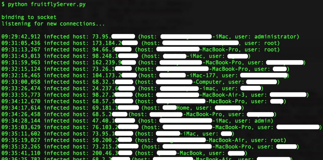 Tomar um servidor de comando e controle, porém, teve um resultado inesperado: cerca de 400 vítimas infectadas com o FruitFly começaram a se conectar a ele. Wardle poderia ter tomado para si esses computadores ou os espiado se quisesse. Em vez disso, acionou as autoridades que investigam o caso no momento.