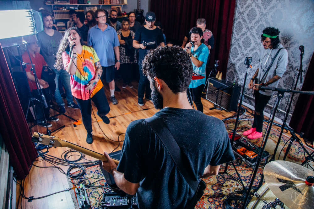 O Far from Alaska passou o mês de fevereiro em Oregon, nos States, gravando o seu segundo álbum, Unlikely, com a produção da Sylvia Massy. Ela é conhecida por suas técnicas incomuns de captação sonora, além de ter assinado álbuns de nomes como System of a Down, Red Hot Chilli Peppers, Tool, Prince e Johnny Cash. Fui convidado para uma audição dos sons do disco recentemente em maio. Ao invés de meter o play, o grupo decidiu mostrar o repertório ao vivo para os contemplados, no estúdio Family Mob, em São Paulo. Foi lá que reuni os músicos de canto e convoquei a entrevista a seguir.