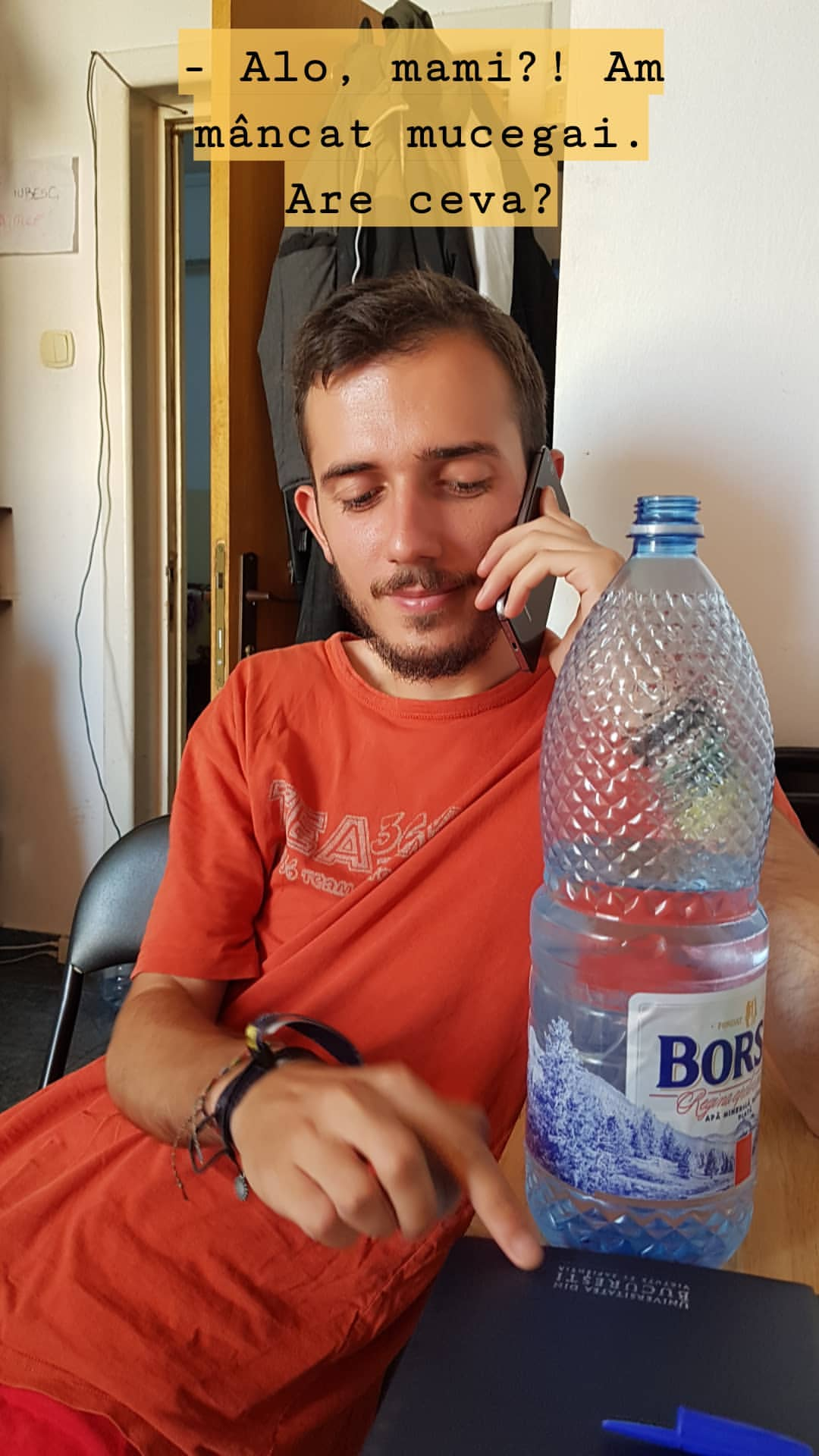 Alexandru: Tatăl meu lucrează la CFR așa că în zilele când sunt prins cu treabă îi spun să vină el până la București, dar de cele mai multe ori ne vedem la jumătatea drumului, la Titu. La mine nu e o zi anume în care primesc pachetul. Când chiar nu mai am ce manca îi întreb pe ai dacă îmi mai trimit și mie mâncare. În sesiune sau iarna, când stau mai mult pe la cămin, primesc săptămânal, dar se întâmplă să primesc și la trei săptămâni.