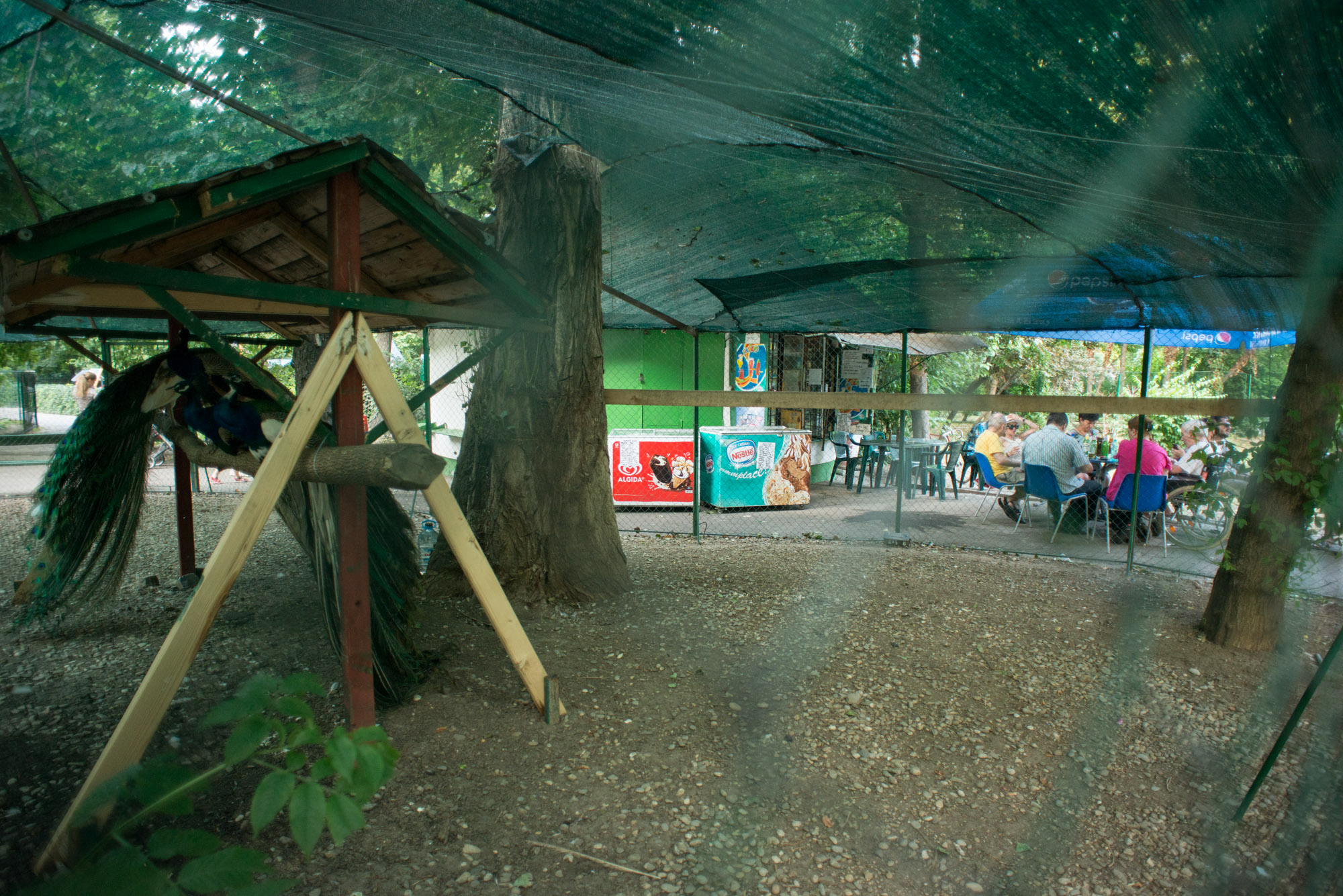 Cea de-a doua terasă din Cișmigiu e amplasată chiar lângă cușca de păuni.
