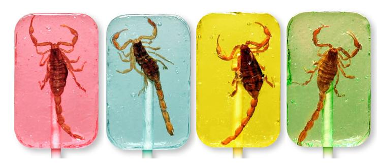 Patronul bomboanelor cu insecte este un bătrân blând și bun, pe nume Larry Peterman. El a fondat acum 35 de ani HOTLIX, care se laudă ca fiind „creatorul original al bomboanelor cu insecte”, din Pismo Beach, California. Începutul e unul modest, ca și produsul în sine: viermi comestibili capitonați pe o acadea cu aromă de tequila.