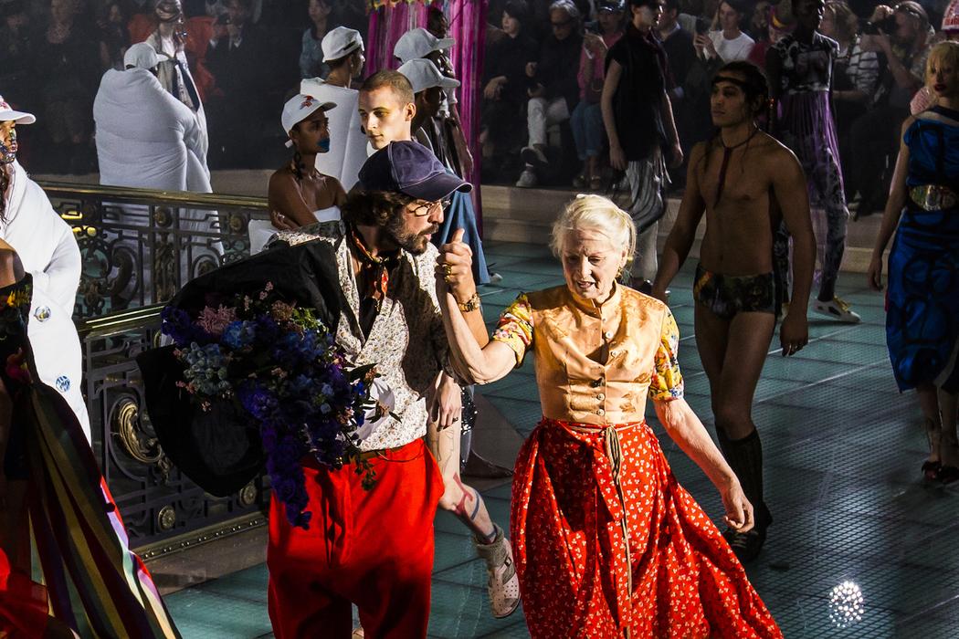Mai rămân în urmă, în timp ce se golește încăperea. Se transformă într-un haos de modele dezbrăcate și personalul lui Westwood care bea șampanie. Încep să stau de vorbă cu un tip îmbrăcat într-un compleu office foarte-n stilul lui Margaret Thatcher și îl întreb ce planuri are echipa mai încolo. „Mergem la Alexa Chung”, răspunde el. „Ai invitația la-ndemână?” Mi-o arată pe telefon și-mi dă un forward.
