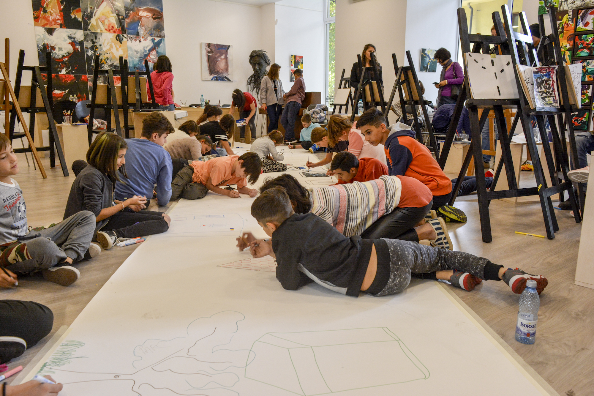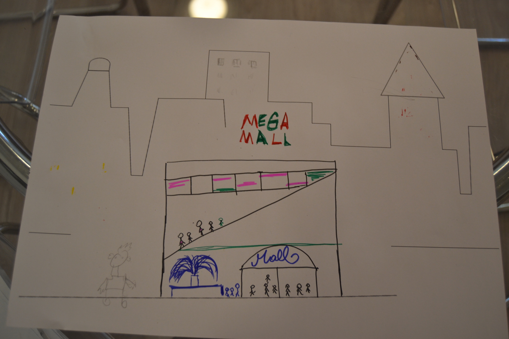 Ultima provocare are loc la sediul EliteArt Gallerie din Piața Națiunile Unite, unde cei mici au putut să deseneze un oraș al viitorului pe o coală albă întinsă pe jumătate din galerie.