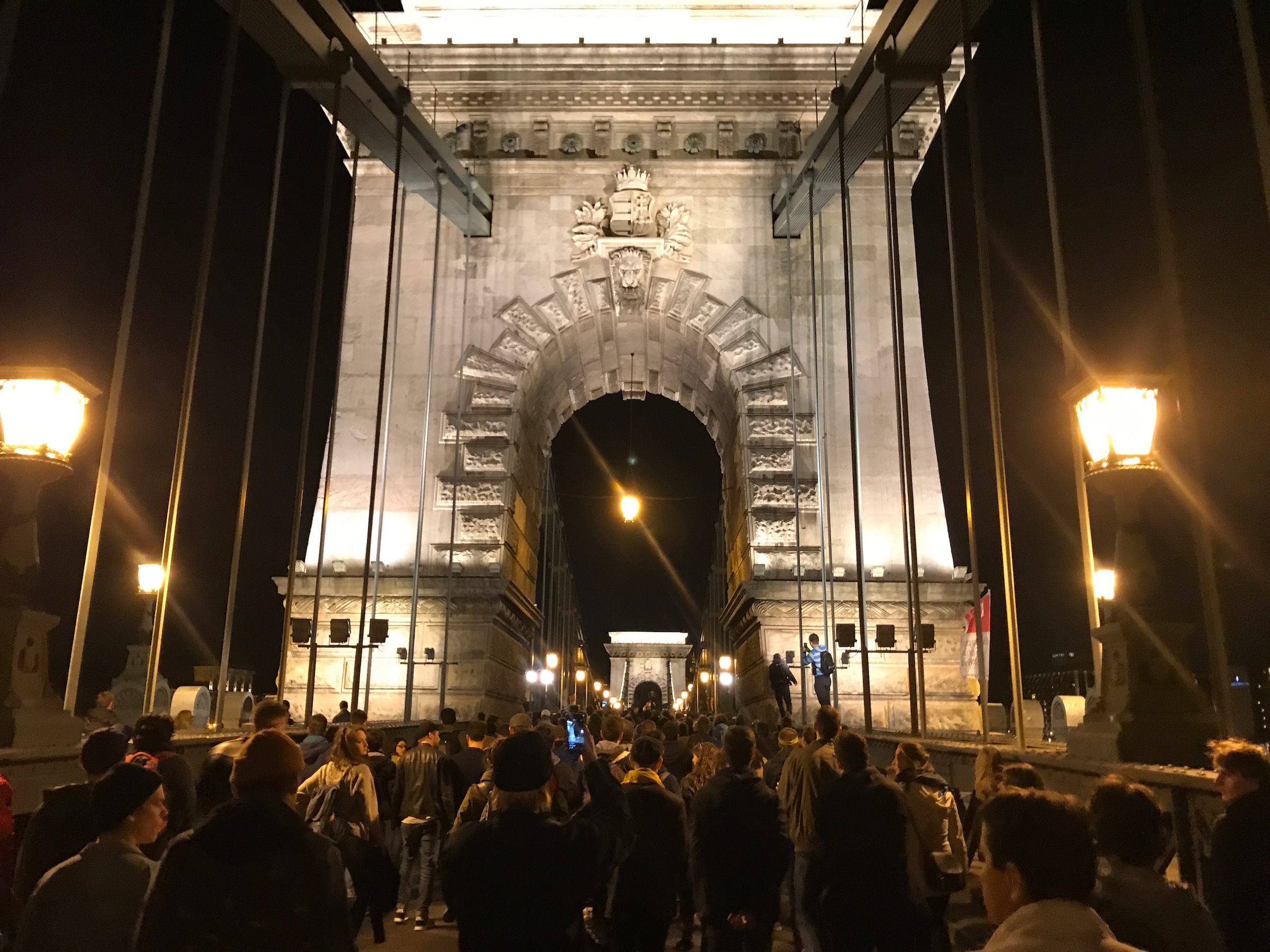 Firul ăsta boem se rupe atunci când văd un grup de tineri care se îndreaptă spre podul Széchenyi, cu pancarte şi steaguri ale Uniunii Europene. Mă iau după ei și întâlnesc alte grupuri care merg în aceeași direcție: palatul prezidențial.