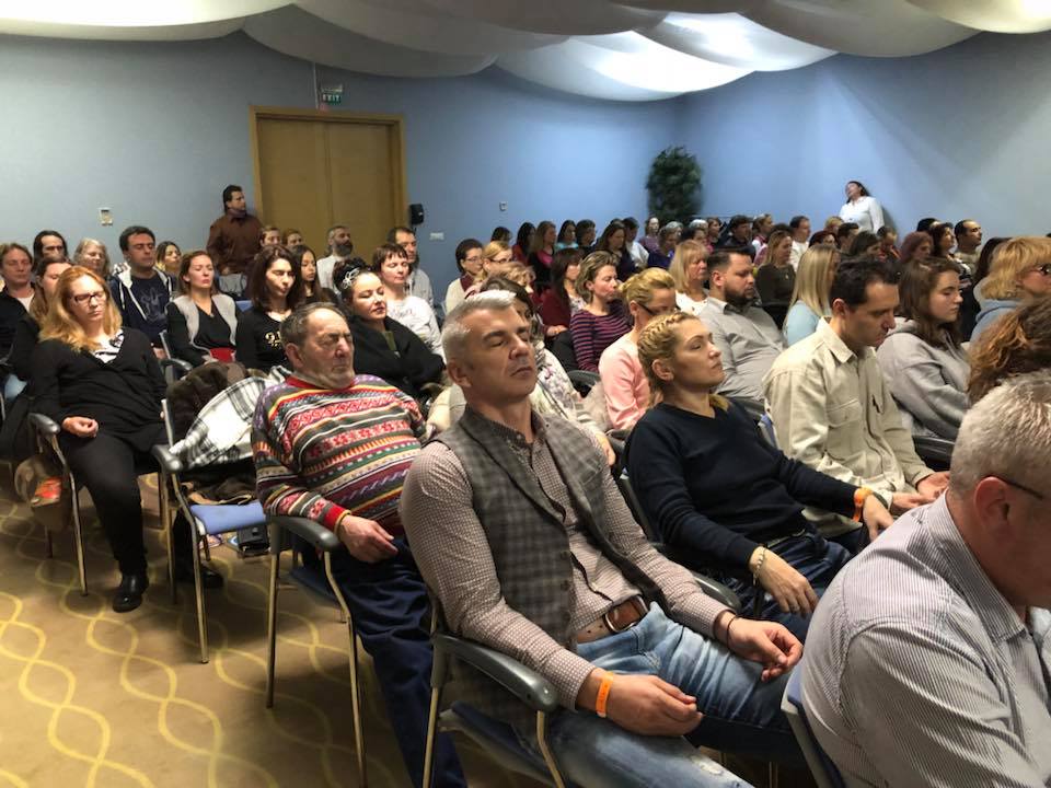 Toată treaba avea loc într-o anostă sală de conferințe a unui hotel, care îmi amintea mai degrabă de un couch casting onest. Ce pot să zic, nu mă simțeam deloc invitată la înălțare spirituală. Ajunsă acolo am dat de o anticameră prea plină pentru nivelul de oxigen din zonă și de o doamnă care-ți dădea o brățară de acces pentru 50 de lei, că oricum nu prindeai vreo altă dovadă fiscală a modului în care ți-ai petrecut seara. Acum sper că nimeni nu a avut nevoie de vreun alibi.