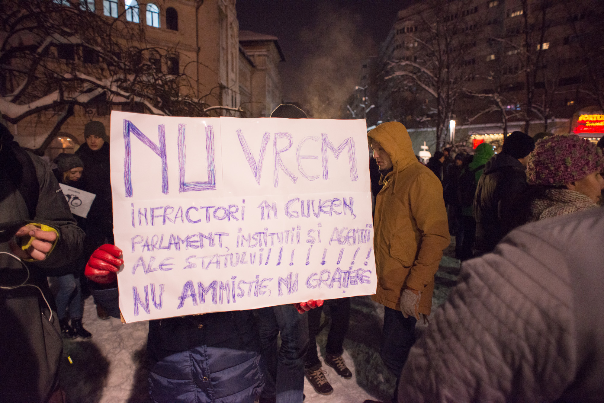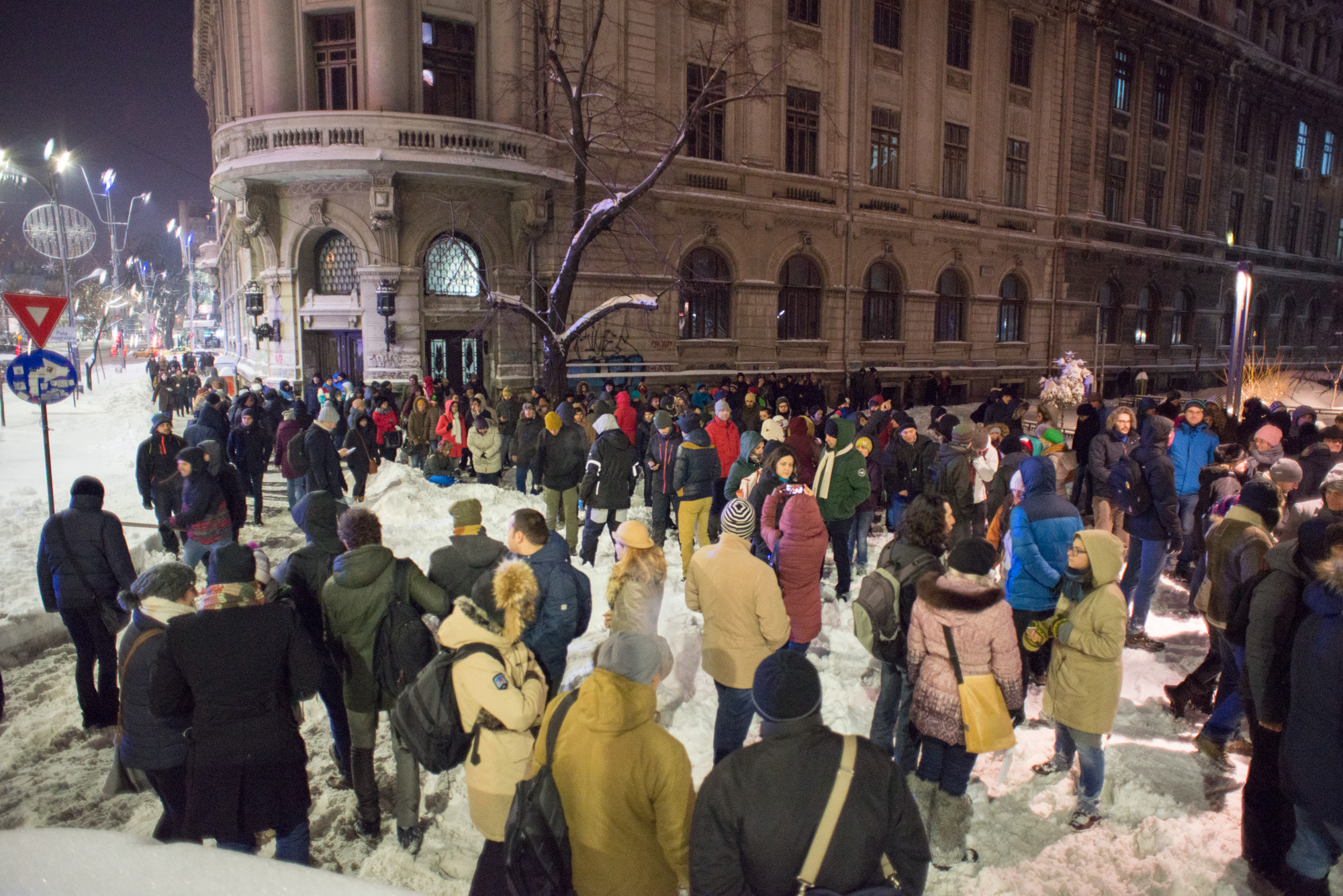 Ieri, în jur de o sută de oameni s-au adunat pe viscolul din Piața Universității din București, ca să protesteze față de atitudinea servilă a Avocatului Poporului, Victor Ciorbea, care este acuzat că își face datoria doar când e vorba de membrii PSD și de apropiații partidului. E amuzant că mulți dintre ei au venit și cu lopețile după ei, ca să curețe locul din jurul fântănii de la Piața Universității unde se organizează protestele autentice din România din anii ’90 încoace (multă dragoste pentru Gabriela Firea și deszăpezirea ei adusă de Dumnezeu).