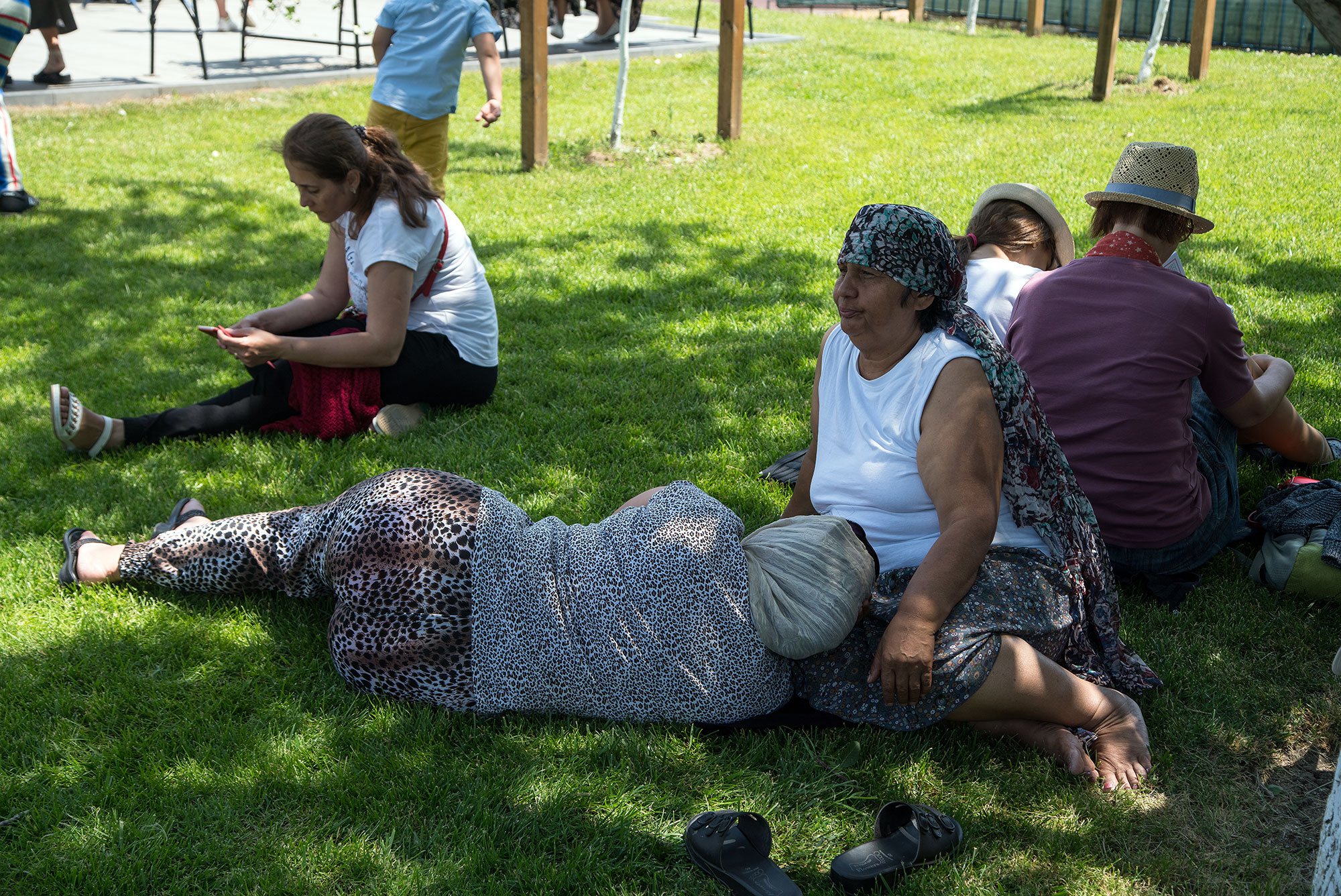 E cald și oamenii sunt moleșiți. Unora li se face rău, dar nimic grav, spun cei de la punctul de prim ajutor. Mai iau o tensiune, mai dau o pastilă sau un pahar de apă. Două doamne din Dâmbovița se odihnesc pe o bancă, amețite și moleșite de căldură. Le place la pelerinaj, deși sunt obosite. Merită efortul.
