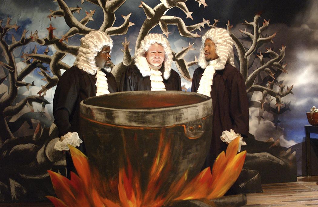 ‘Makbet’ u ‘OZ-u’, sa redovnim glumcima u seriji Krejgom Grantom, poznatijim kao muMs da Schemer (levo), koji je igrao Pesnika, jedan od retkih likova stalne postave koji je preživeo svih šest sezona. Foto: Larry Riley / HBO.