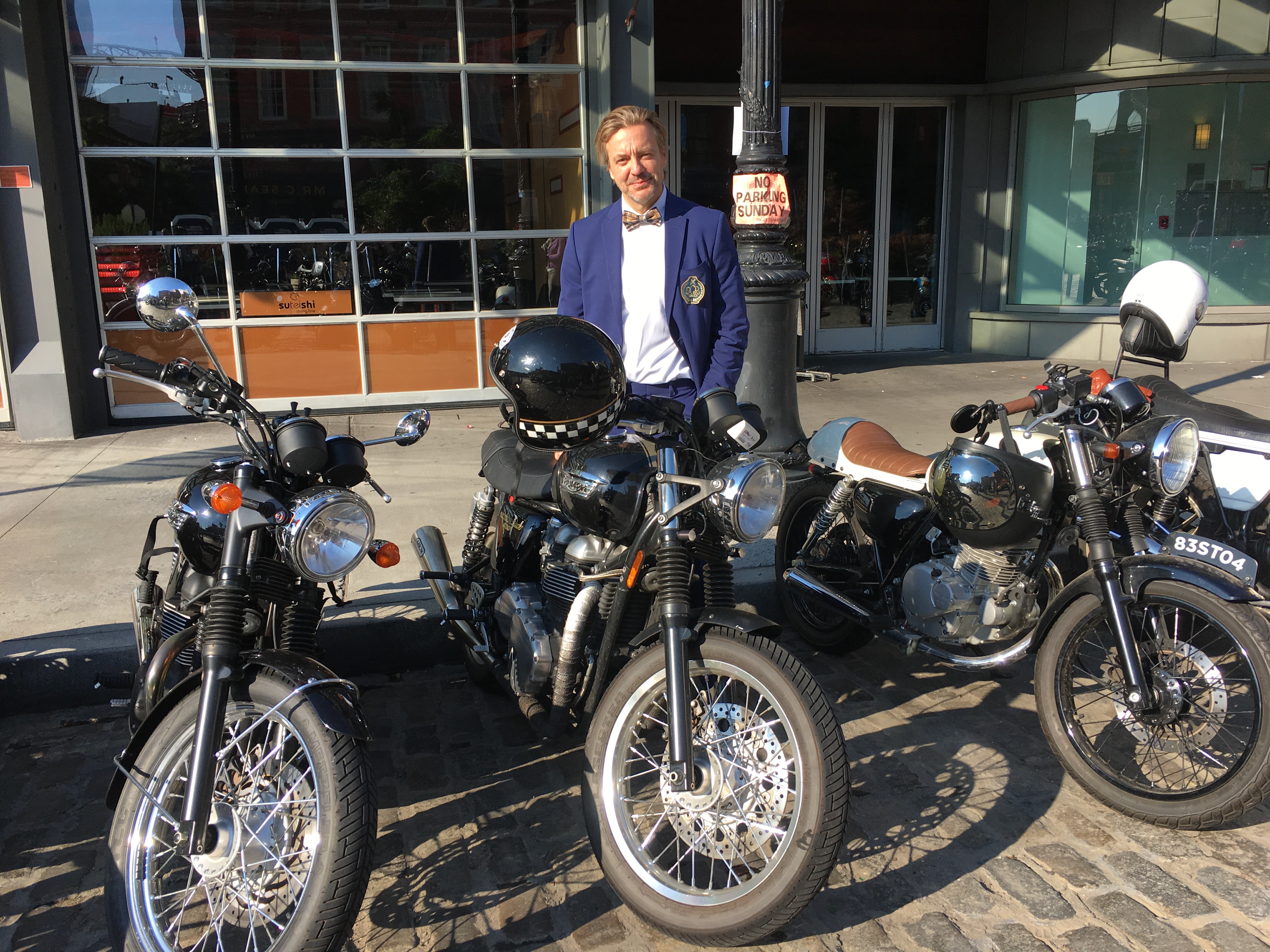Za neke, halabuka više od 800 motocikala u Saut Strit Siportu u centru Menhetna je moglo da pretvori vedro, blago nedeljno jutro u nepodnošljivu noćnu moru zujanja u ušima i izduvnih gasova. Ali na ovim konjima od čeličnih cevi, aluminijuma i ugljeničnih vlakana ne sede ozloglašeni odmetnici bajkerske bande. Ovi jahači sebe nazivaju „uglednom gospodom“, i besprekorno su odeveni u odela po meri, živopisnih boja, sa odgovarajućim kravatama koje se slažu, i u izglancanim cipelama, i svi su se okupili da bi prikupili novac i podigli svest o muškom zdravlju. Ovo je izdanje Vožnje ugledne gospode za 2018, dobrotvorne akcije sa koordinisanim vožnjama motora kroz gradove, od Los Anđelesa do Ouklanda, i po svakom gradu između njih.