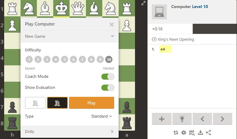 Kako nisam mogao da nađem živog protivnika, otišao sam na sajt chess.com. Pa šta, kompjuteri odavno kidaju u šahu, a i uneo sam par modifikacija kako bih igru učinio što zahtevnijom.