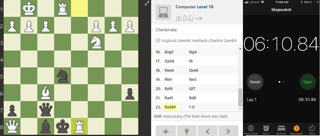 Namestio sam štopericu na telefonu i krenuo. Ne znam da li me je više opterećivala sama težina meča ili činjenica da vreme otkucava. Nisam znao šta više želim, da pobedim kompjuter ili sat.