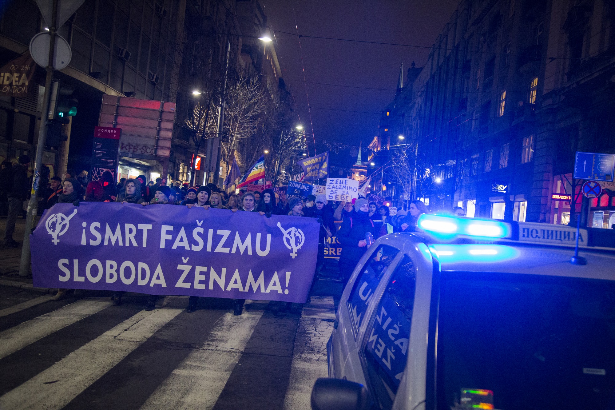 Grupa nevladinih organizacija Ženski pokret je danas u pet sati povela još jedan protestni marš: Smrt fašizmu – sloboda ženama!