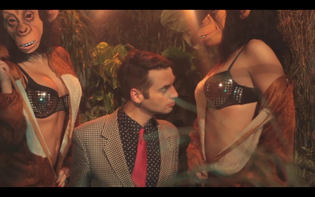 1. Danton’s playfully louche demeanor as he frolics in a fake forest like the lovechild of Pulp’s Jarvis Cocker and Suede’s Brett Anderson.