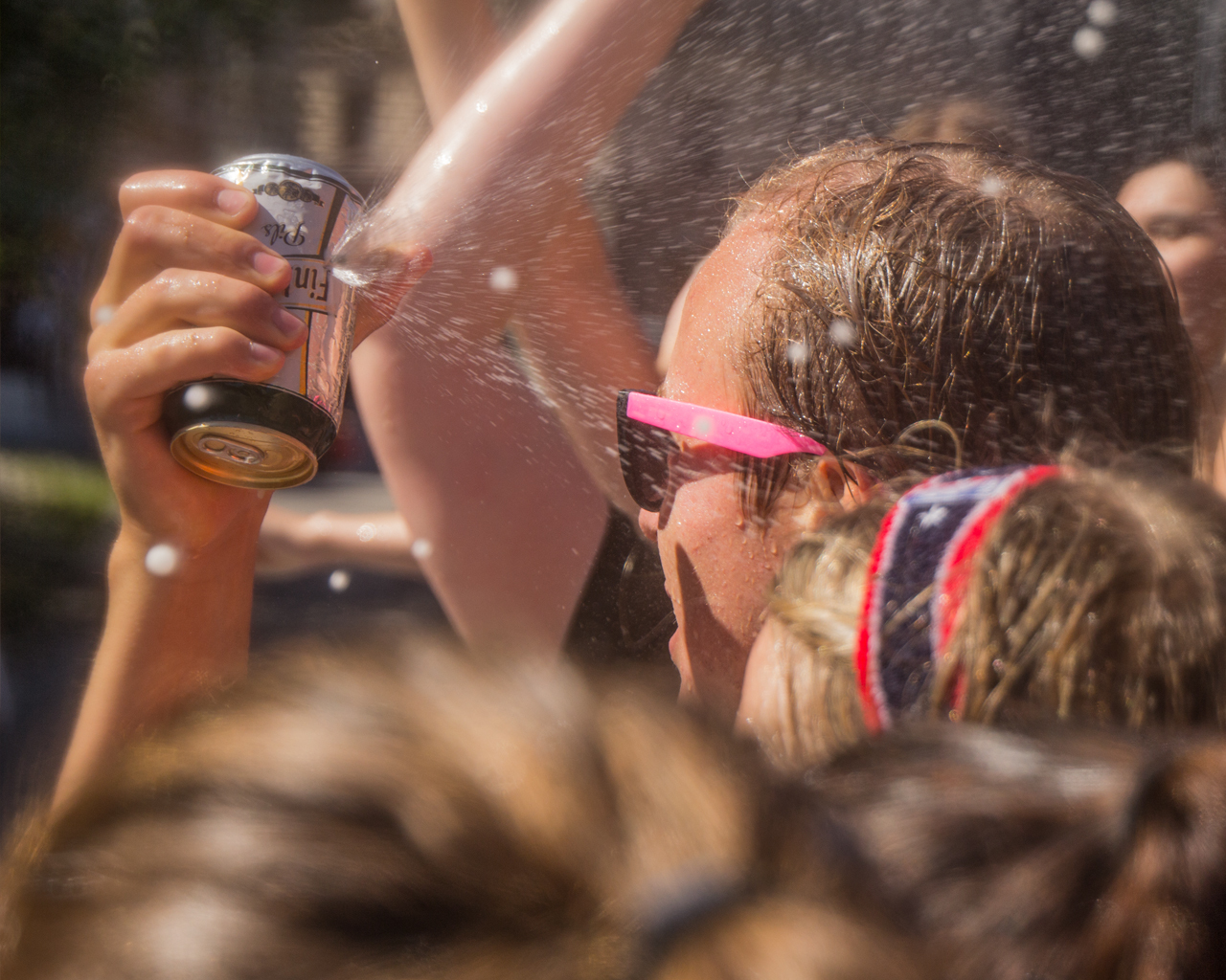We sent out a photographer to capture some beer spraying students celebrating on a studenflak driving through the streets of Stockholm. The tumultuous joy and the hundred cans of beer sprayed on him left him slightly scarred and very sticky.